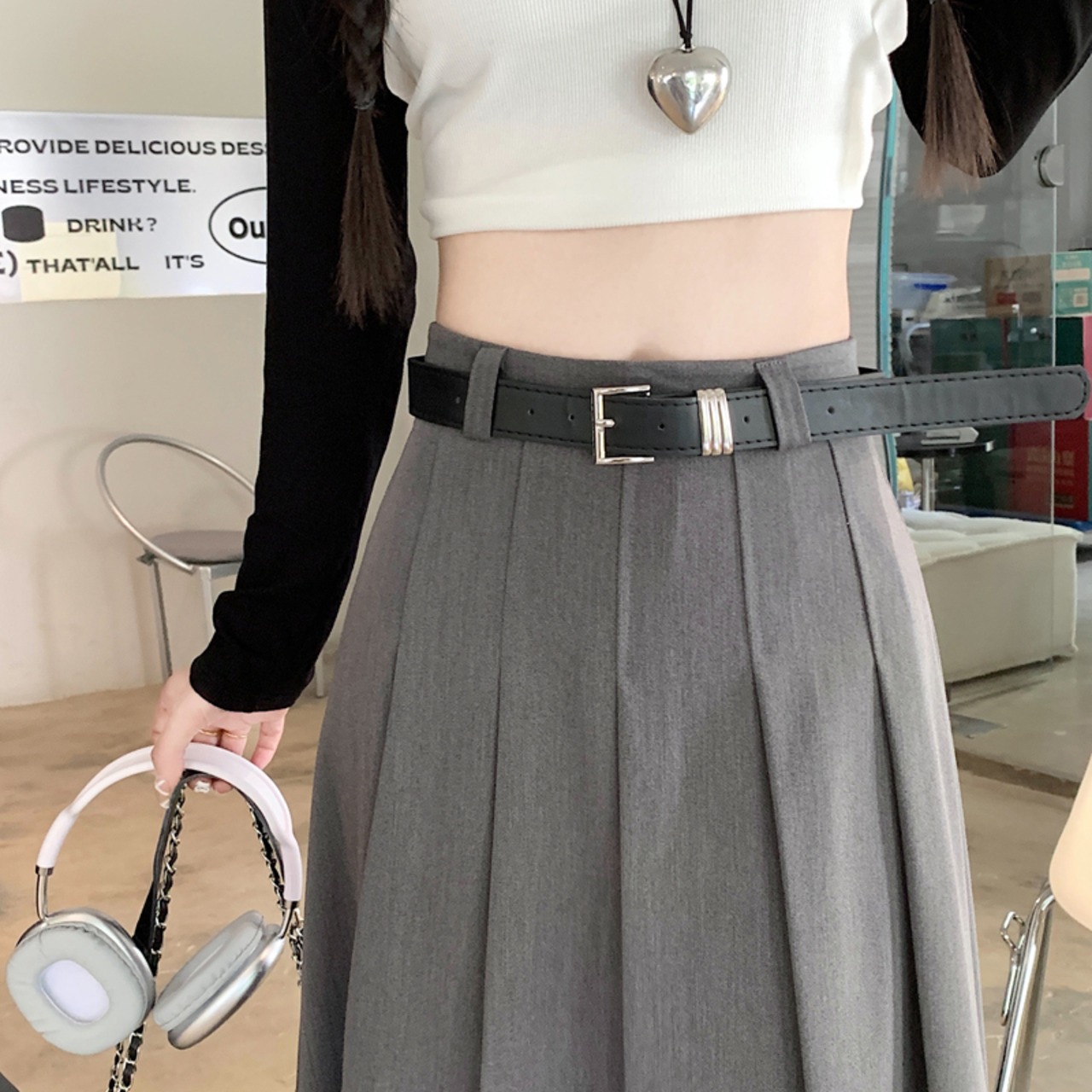 ロングプリーツスカート スカート ロング丈 グレー プリーツ 無地 シンプル 大人女子 カジュアル レディース 足元カバー お出かけ デート MH3665
