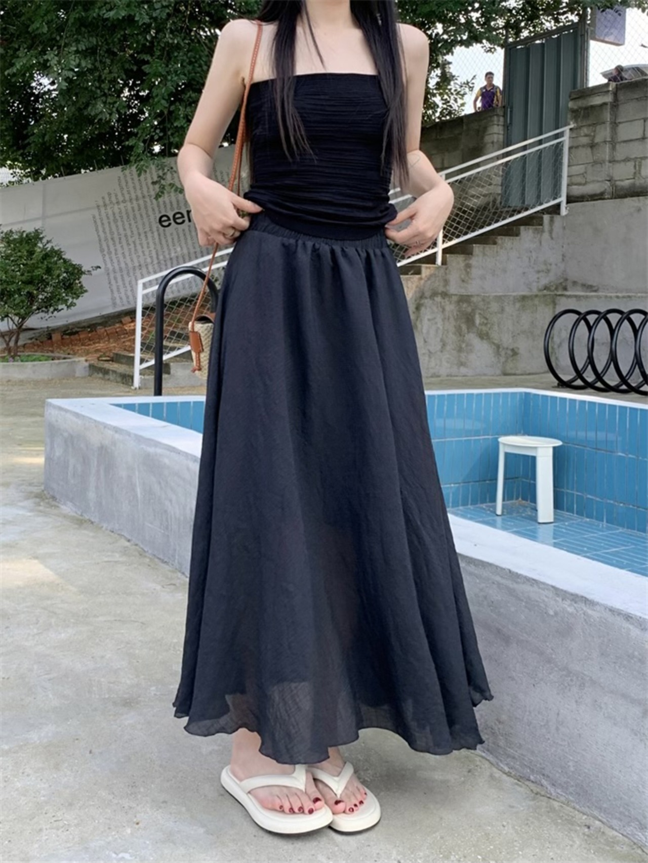 ロングフレアスカート スカート ロング丈 フレア 無地 ウエストゴム Aライン レディース フェミニン ガーリー ママコーデ デート MH3669