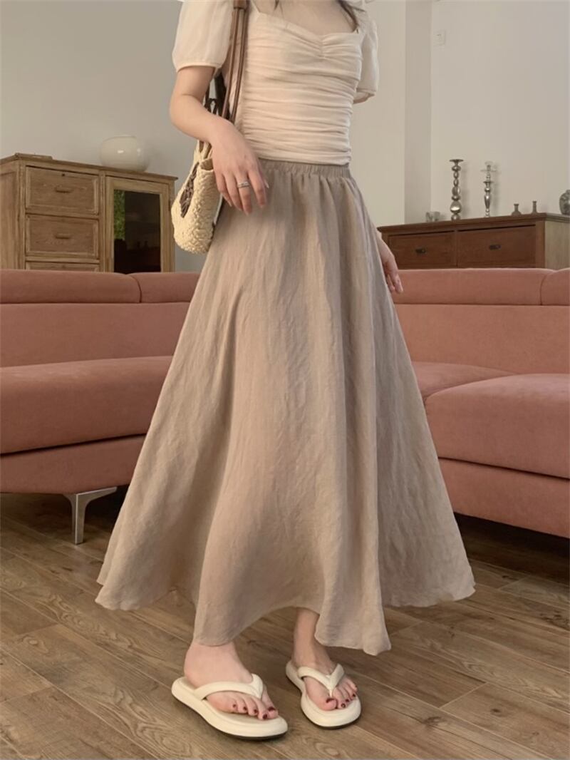 ロングフレアスカート スカート ロング丈 フレア 無地 ウエストゴム Aライン レディース フェミニン ガーリー ママコーデ デート MH3671