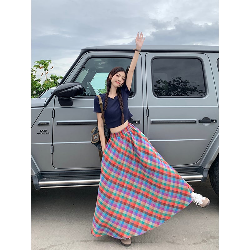 ロングチェックスカート スカート ロング丈 チェック柄 Aライン カラフル カジュアル ガーリー レディース デート お出かけ MH3685