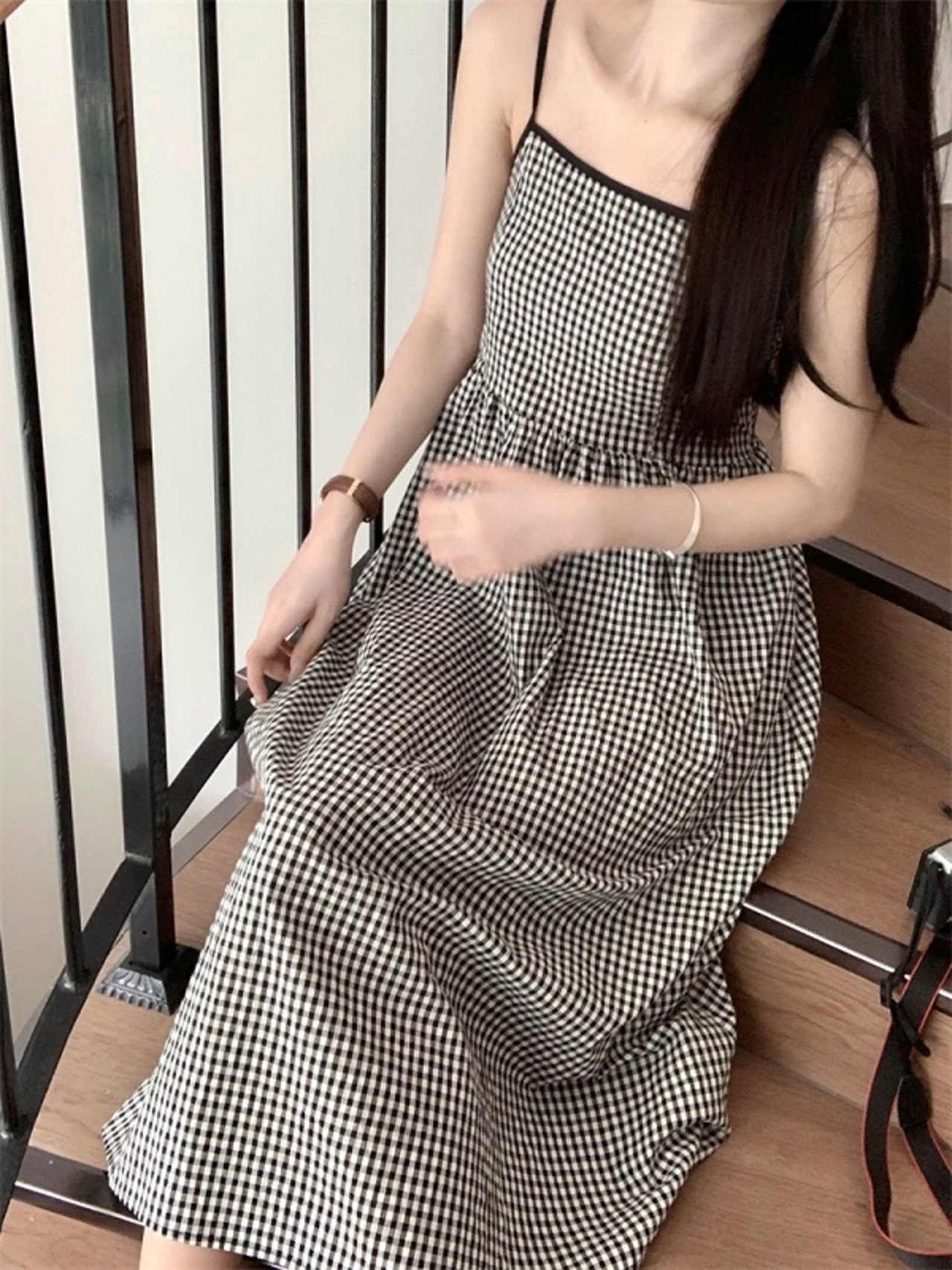 キャミソールワンピース ワンピース キャミワンピ ロング丈 ギンガムチェック チェック柄 ノースリーブ レトロ シック レディース 大人可愛い リゾート MH3697