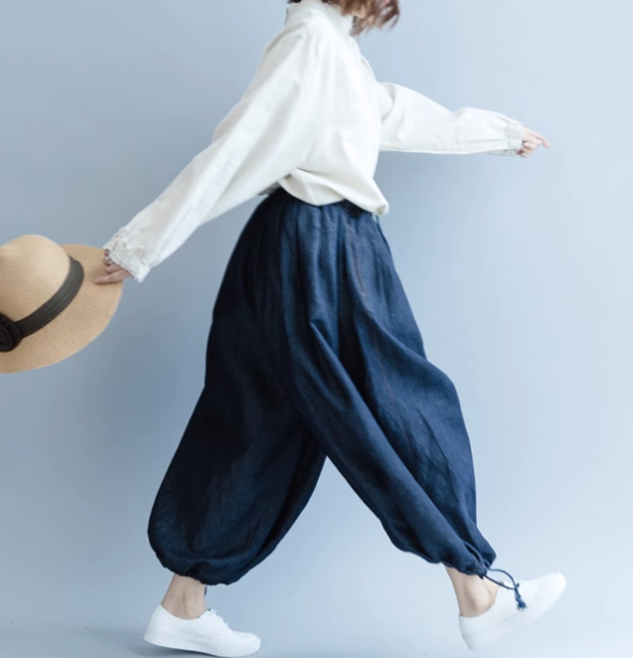 シャツ トップス レディース 春秋 長袖 バックボタン ハイネック ナチュラル ブラウス ゆったり 無地 カジュアル ホワイト ab2646