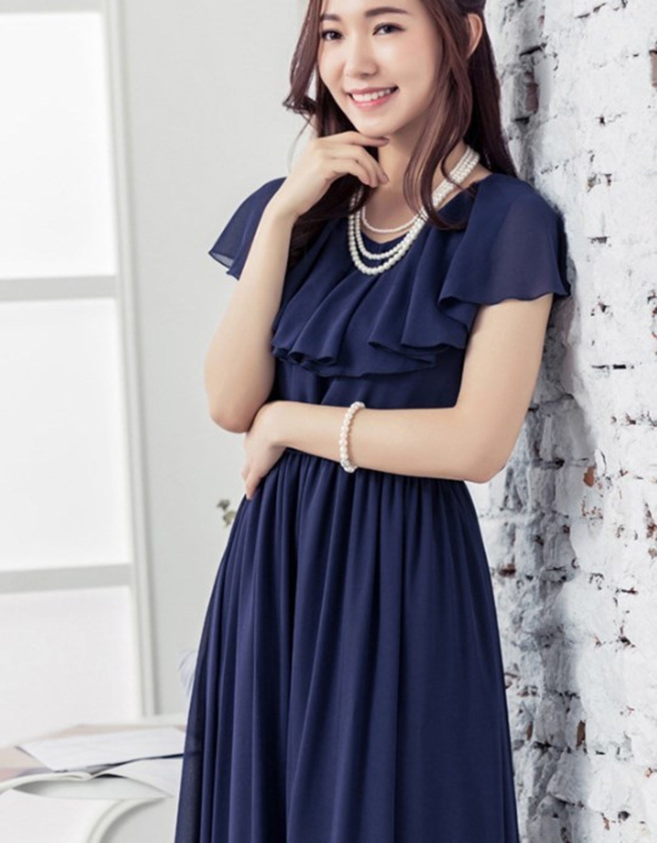 胸元の大きなフリルがポイントのドレス。