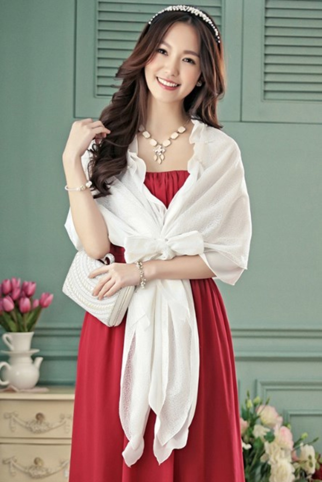 ストール ショール レディース パーティー 結婚式 ロング丈 2way リボン フリル エレガント ホワイト ab2676