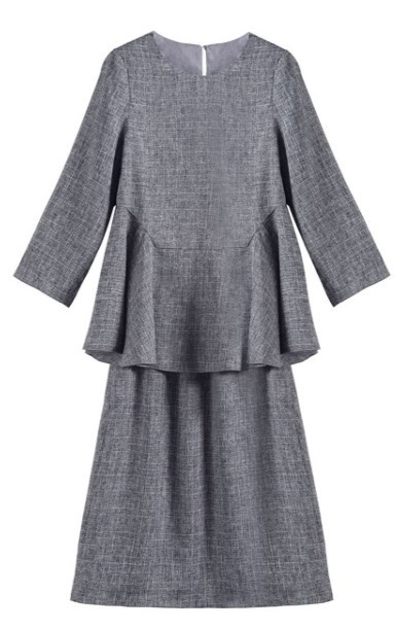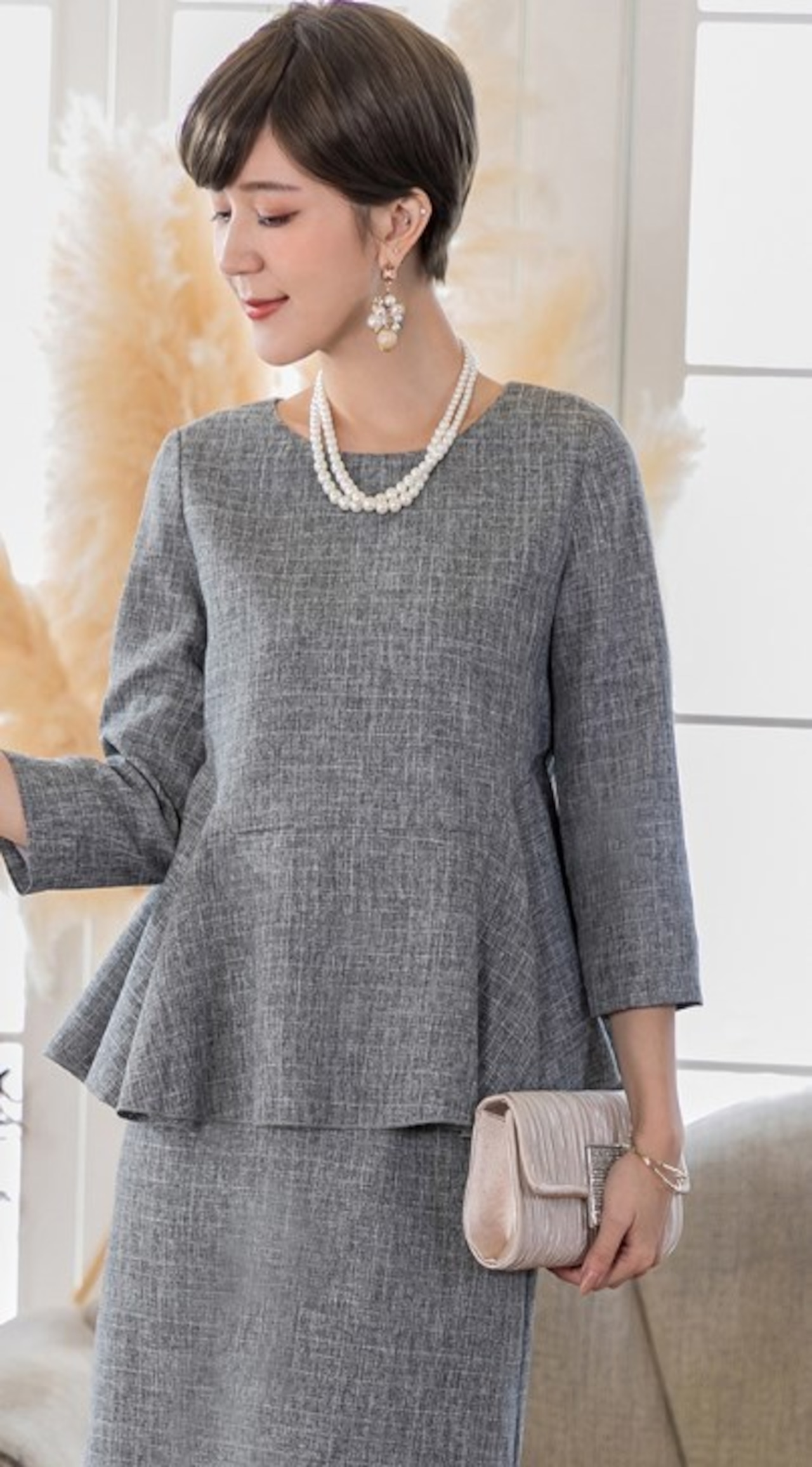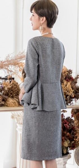 セットアップ ツーピース レディース フリル スカート フォーマル 七分袖 ラウンドネック 通勤 卒業式 パーティー グレー ab2687