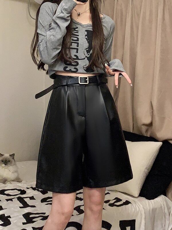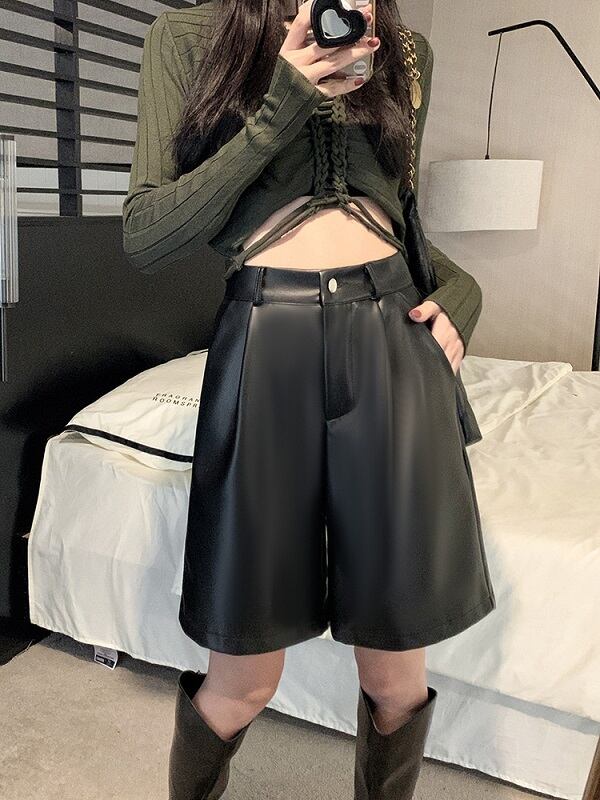 ハーフパンツ パンツ ハーフ PUレザー ハイウエスト ブラック 秋 冬 レディース きれいめ おしゃれ デート MH3702