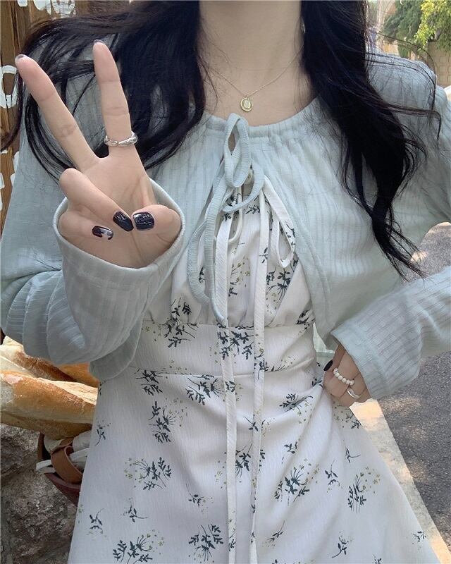 ショート丈カーディガン トップス ショート丈 カーディガン レースアップ ミントグリーン 薄手 リボン レディース ガーリー 無地 キュート MH3708