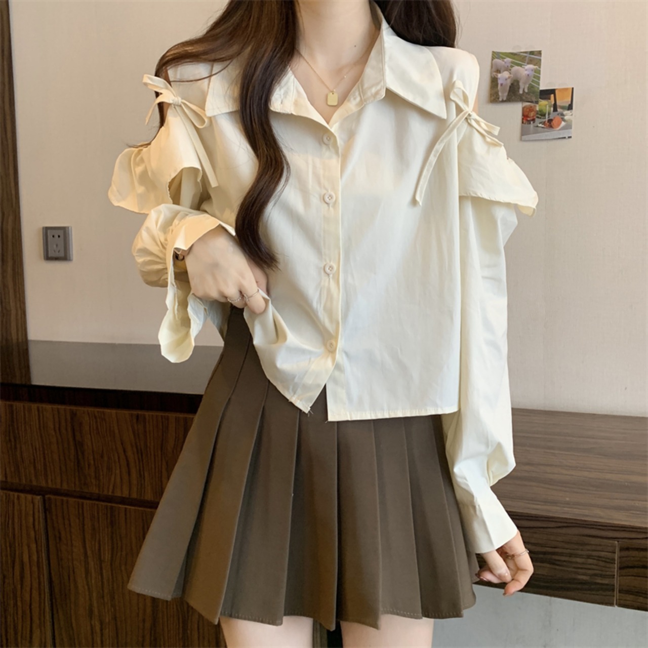 オフショルダーブラウス トップス オフショルダー ブラウス 長袖 リボン フリル レディース デート お出かけ MH3720