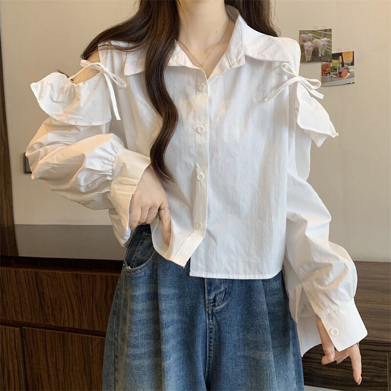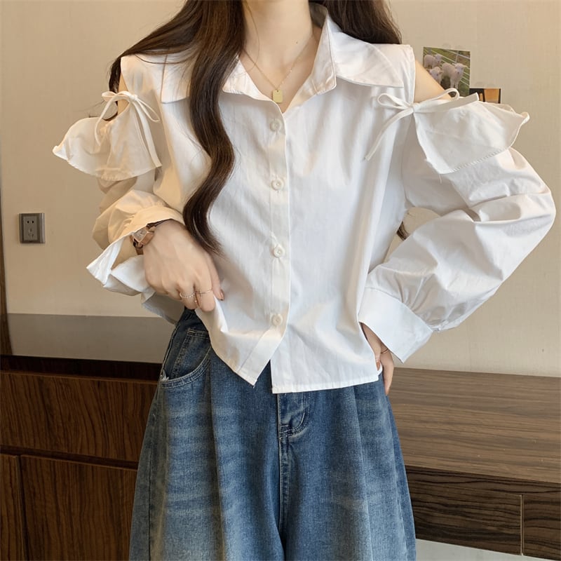 オフショルダーブラウス トップス オフショルダー ブラウス ホワイト 長袖 リボン フリル レディース デート お出かけ MH3721