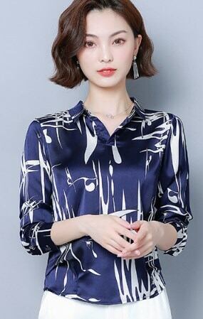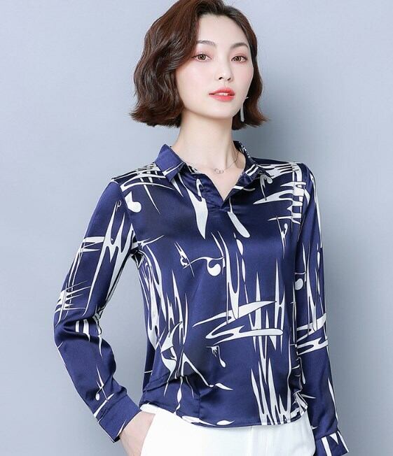 ブラウス シャツ レディース 大きいサイズ シフォンシャツ 長袖 オールシーズン オフィス ネイビー ab2714