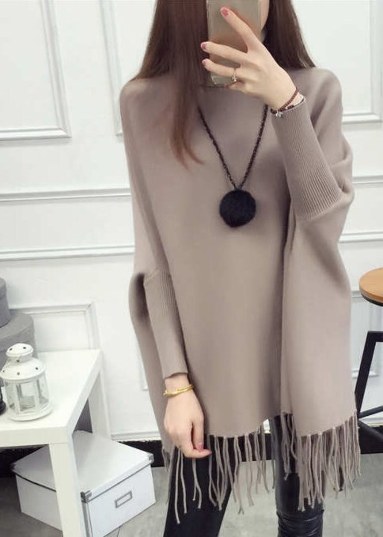 ポンチョ風のフリンジで体型カバーもOK!