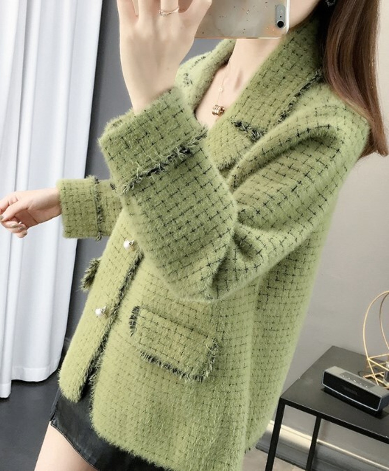 コート ショート丈 レディース 秋冬 アウター チェック キルト風 長袖 ジャケット グリーン ab2735