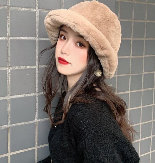 帽子 ニット帽 ニット レディース 秋冬 バケットハット フェイクファー もこもこ 防寒 カーキ ab2739
