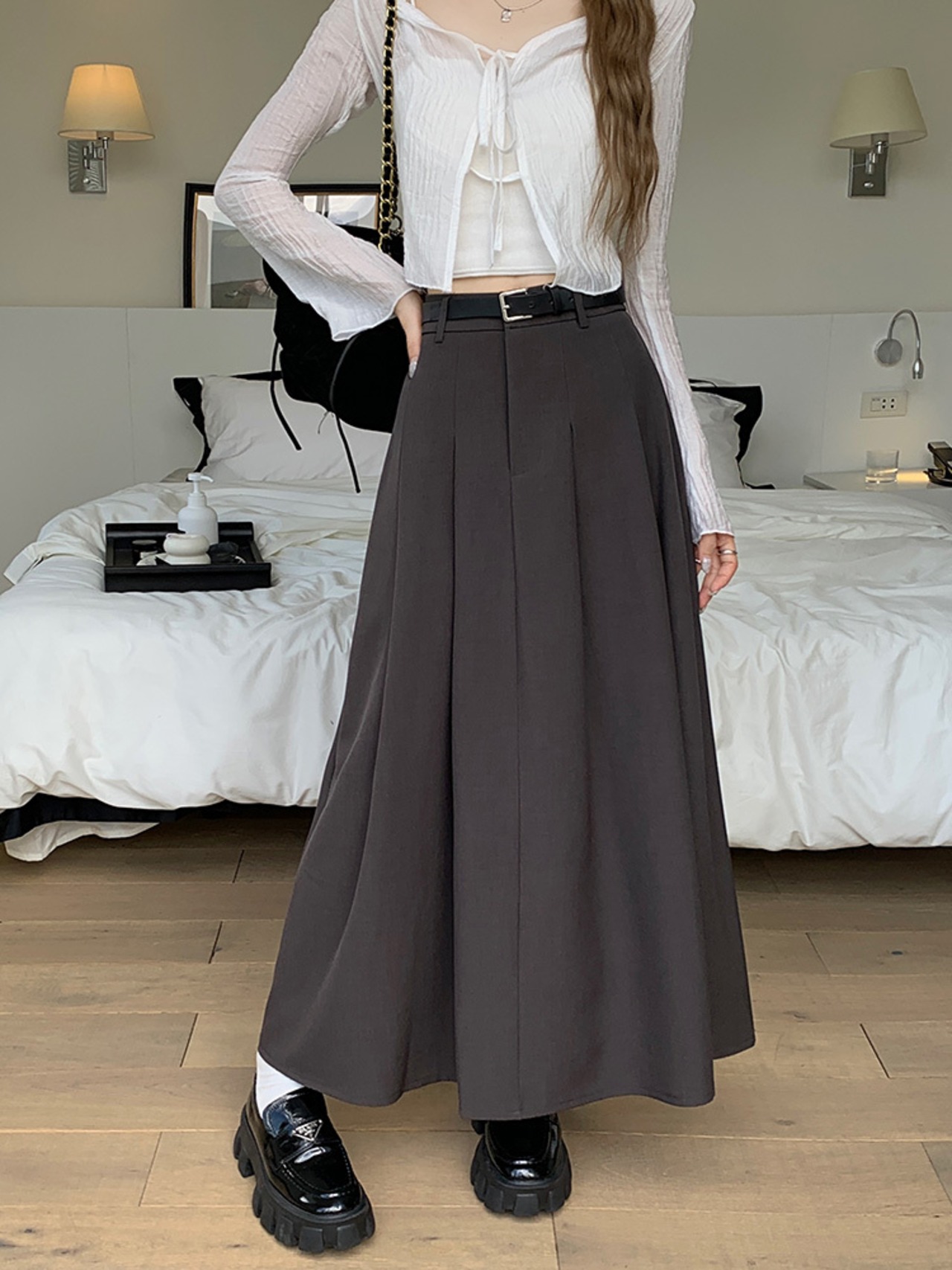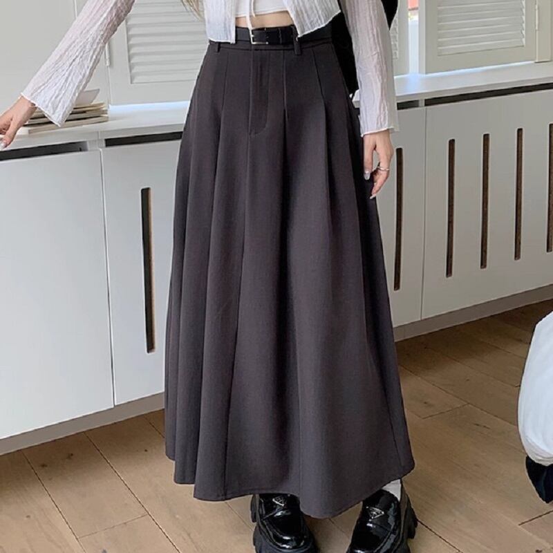 ロングスカート スカート ロング丈 Aライン レディース 無地 グレー シンプル 秋 大人可愛い 足元カバー きれいめ デート MH3732