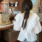 長袖のフリルブラウス。
