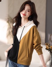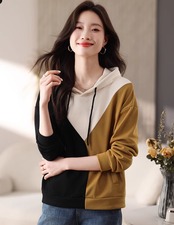 トレーナー パーカー レディース 秋冬 カジュアル フード付 トリコロール 3色 コントラスト 長袖 ラクチン ab2781