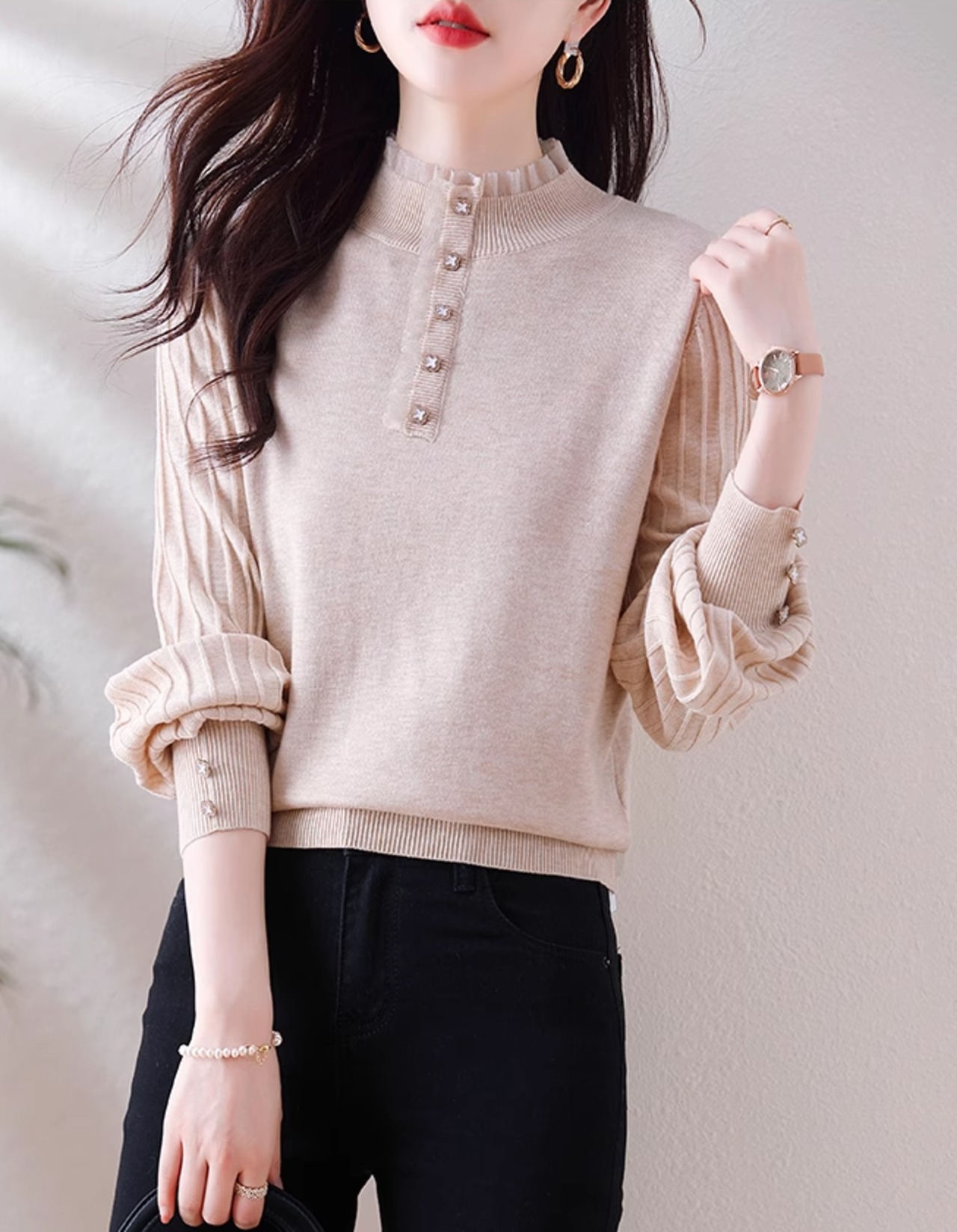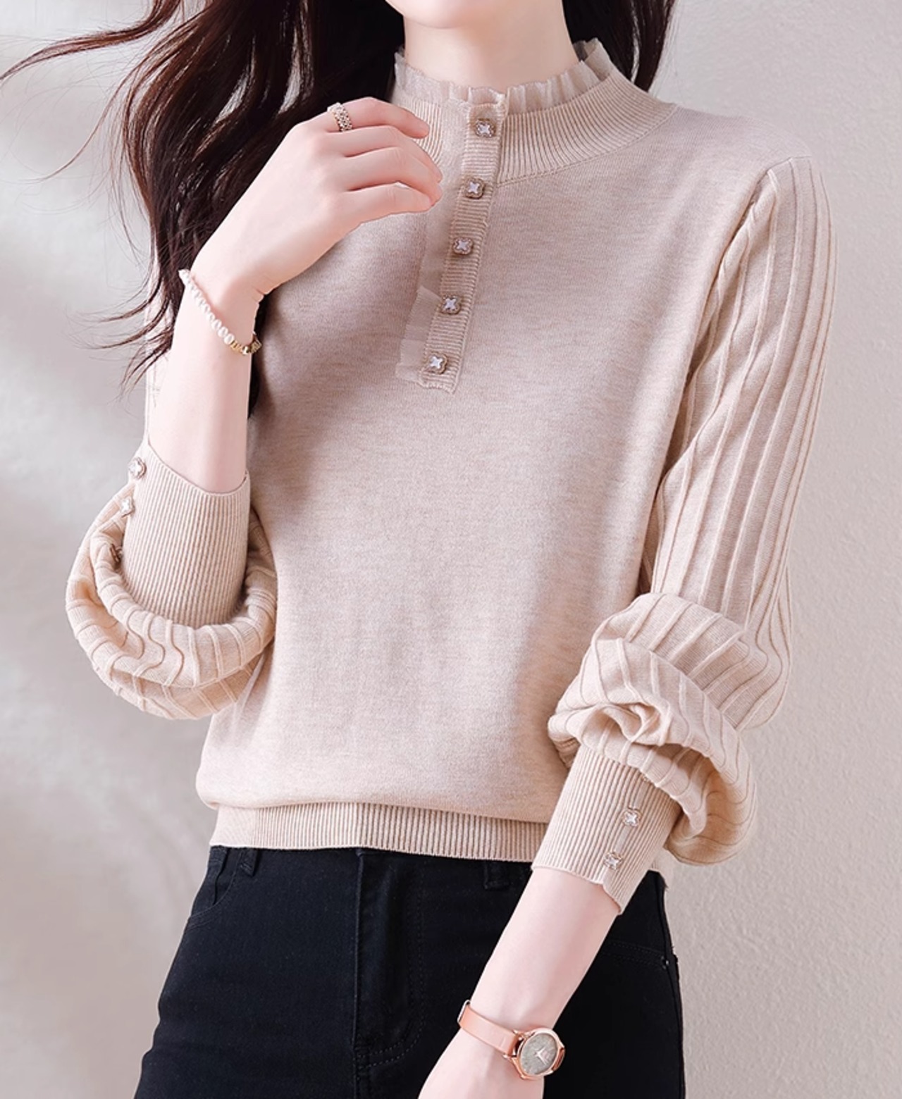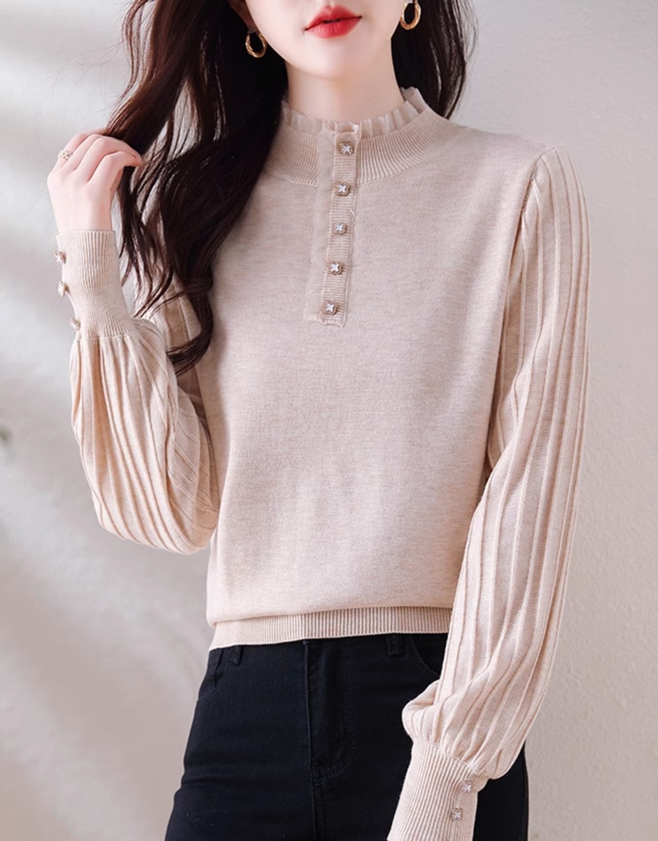 ニット トップス 秋冬 レディース プルオーバー ハイネック プリーツ 切り替え フリル オフィス ママコーデ シック プチプラ ab2790