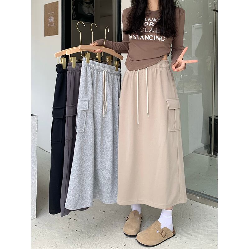 カジュアルロングスカート スカート レディース ロング丈 カジュアル ウエストゴム Aライン ガーリー MH3770