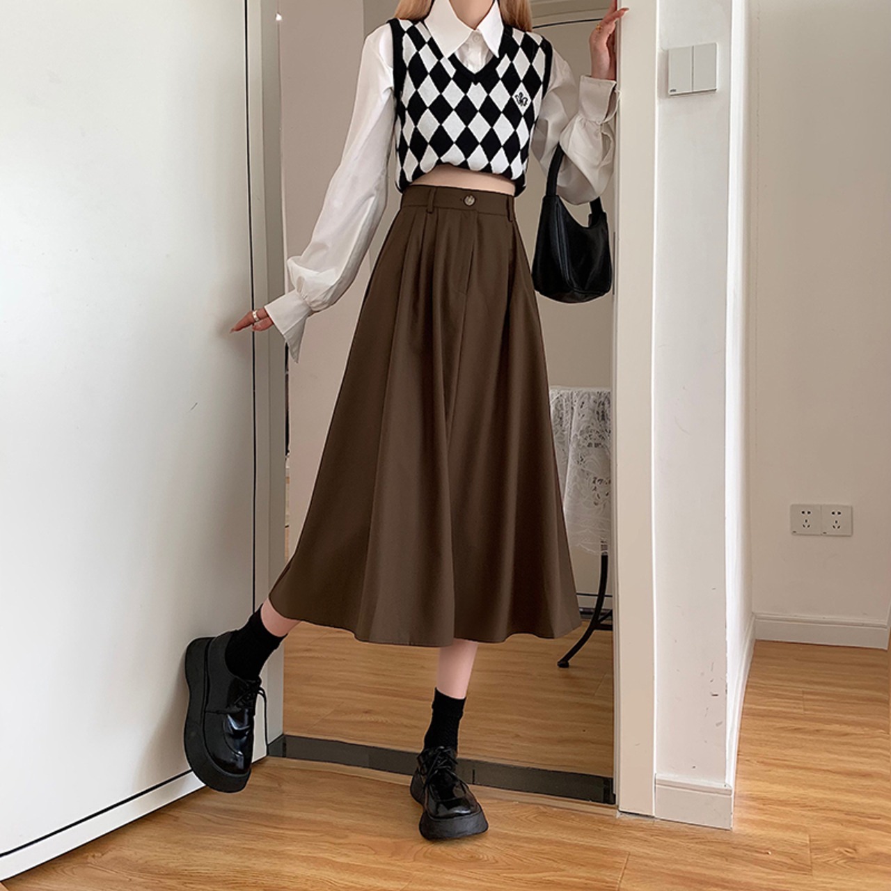 ミモレ丈のAラインスカート。