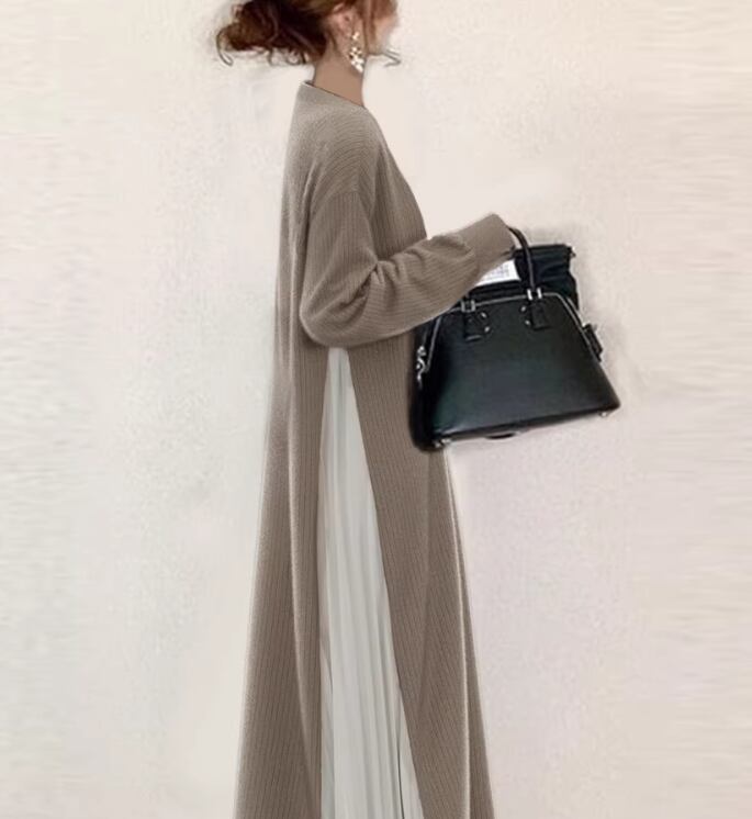 ワンピース レディース 秋冬 ロング丈 プリーツ 切り替え ラウンドネック 長袖 ナチュラル ガーリー カジュアル ab2850