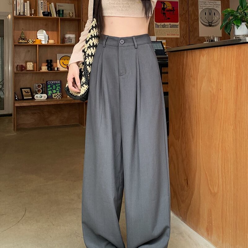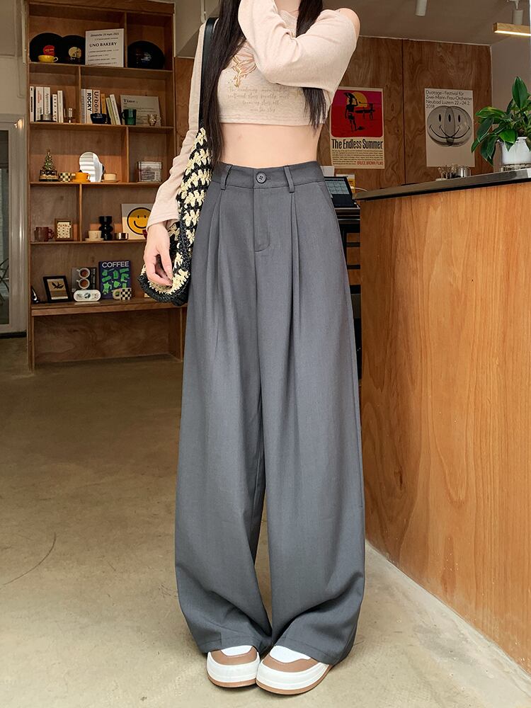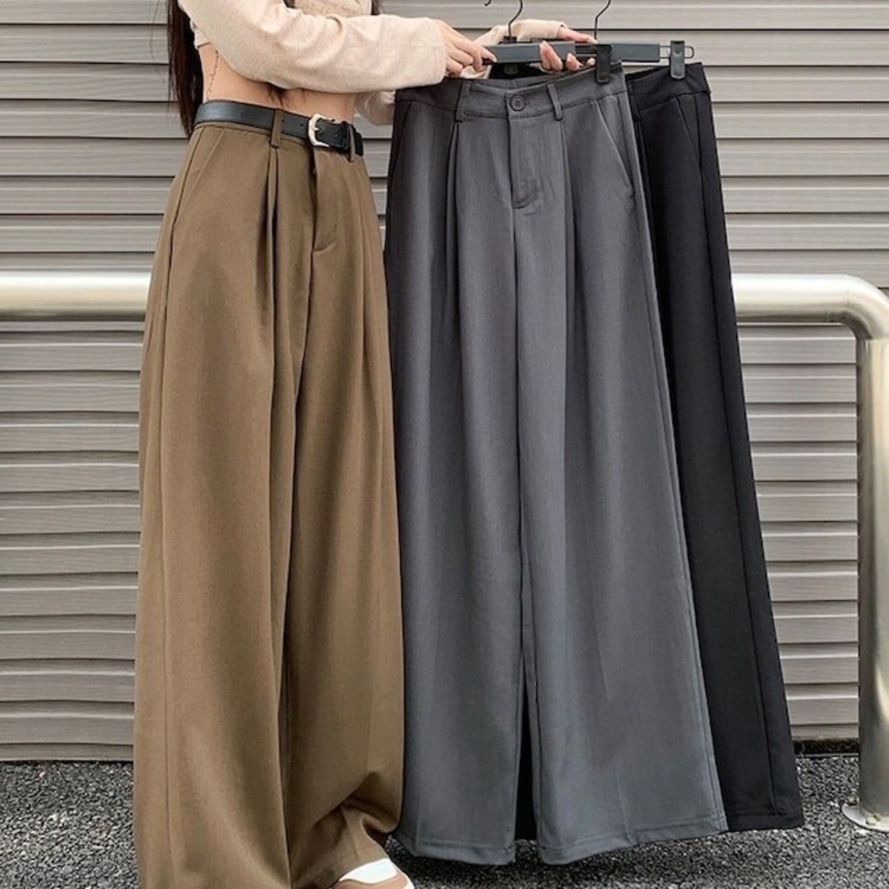 "ハイウエストストレートパンツ パンツ レディース ロング丈 ワイド ストレート ハイウエスト ゆったり 脚長効果 美脚効果(画像のブラウン、ブラックは参考色)MH3811 "
