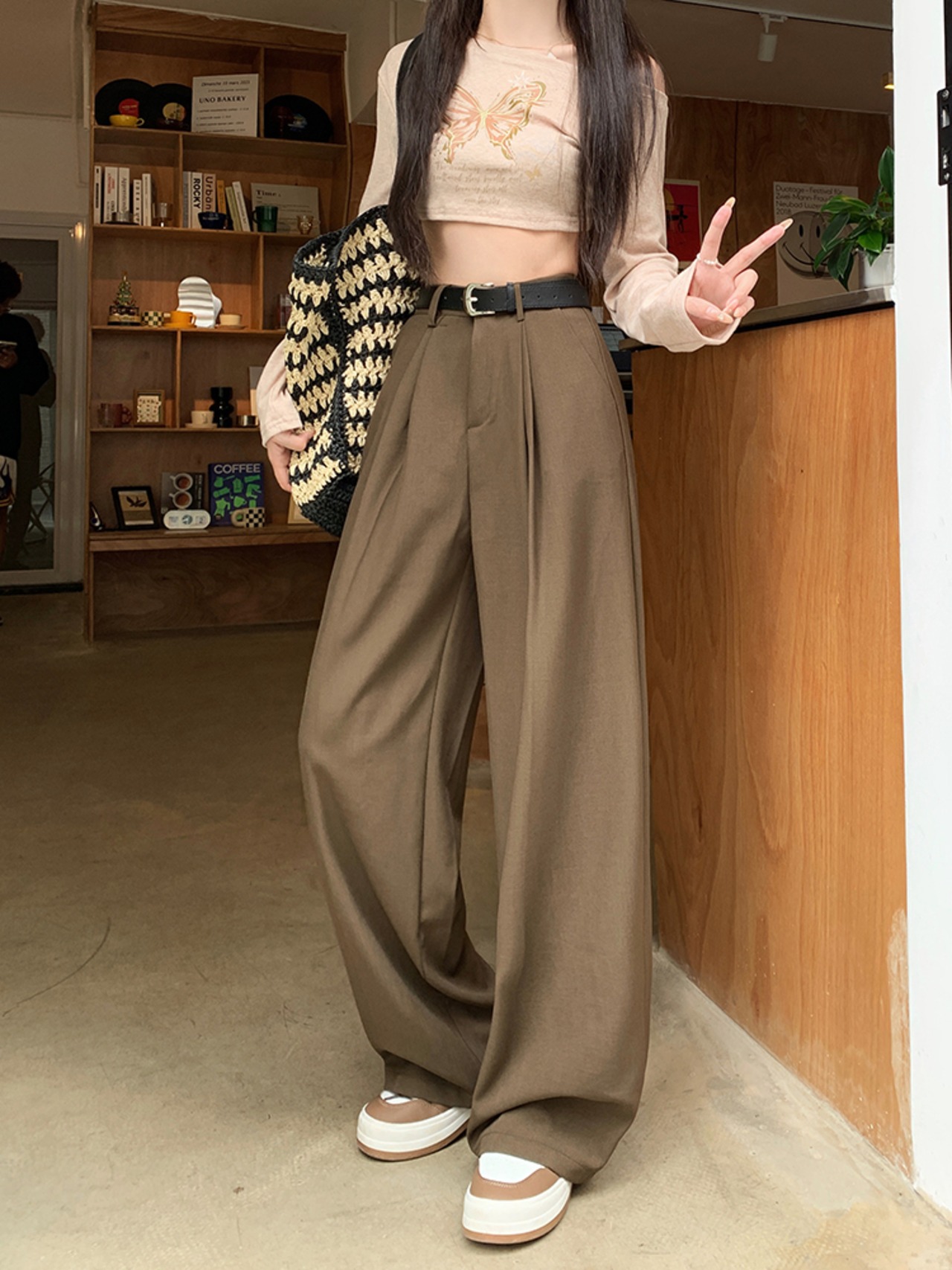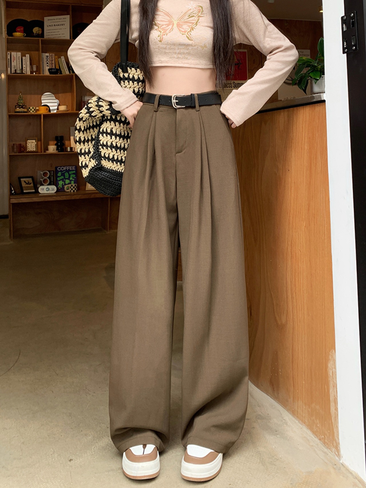 "ハイウエストストレートパンツ パンツ レディース ロング丈 ワイド ストレート ハイウエスト ゆったり 脚長効果 美脚効果 無地 きれいめ カジュアル MH3812 "