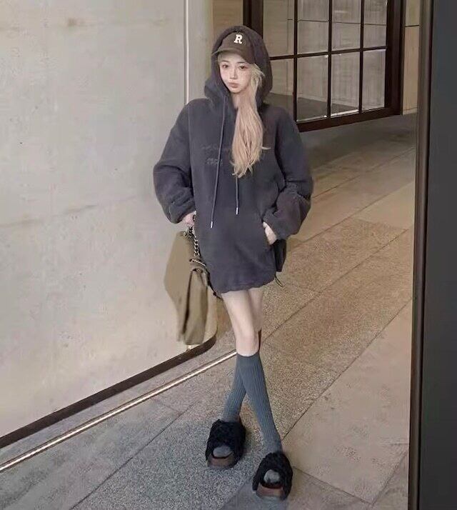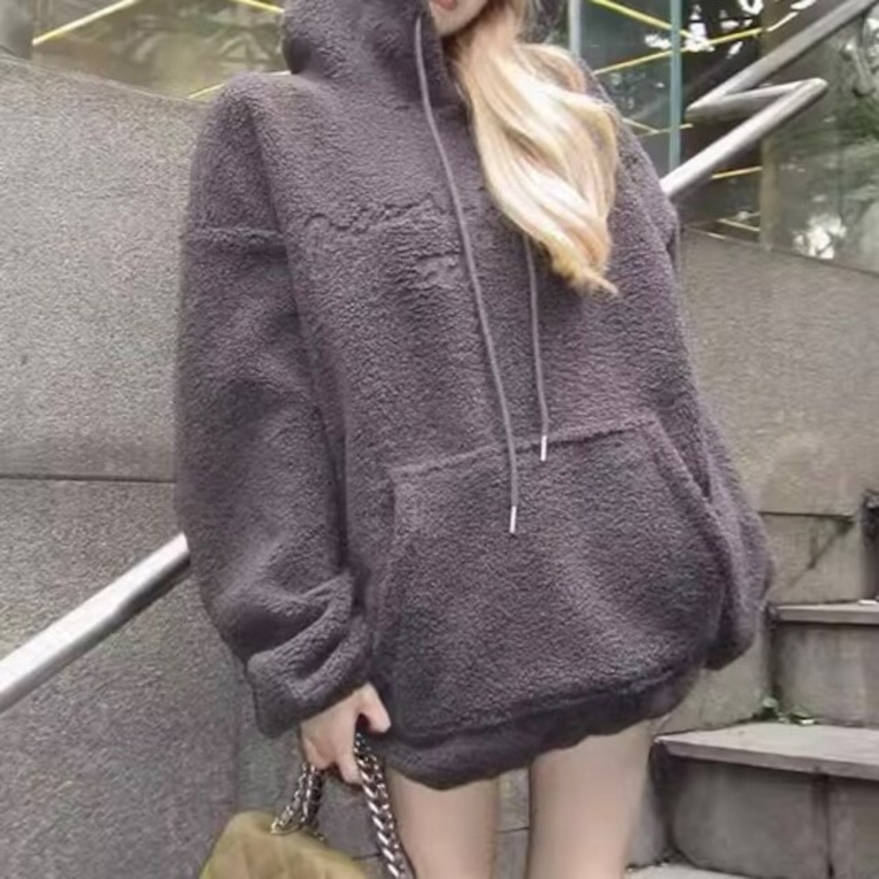 フーディー トップス レディース パーカー プルオーバー フード付き 長袖 もこもこ ゆったり 体型カバー ガーリー カジュアル 秋 冬 MH3836