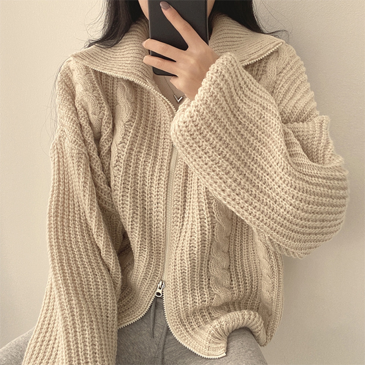ダブルジッパーニット トップス ニット セーター ダブルジッパー ファスナー レディース 長袖 秋冬 カジュアル ゆったり MH3851