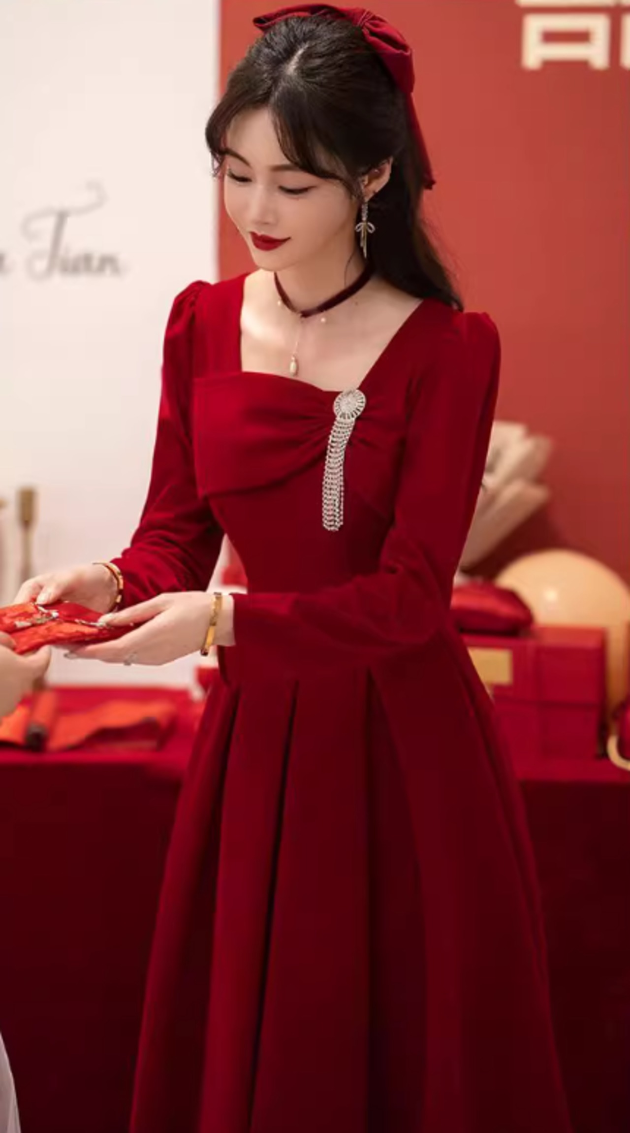 ワインレッドで素敵なドレスワンピース♪