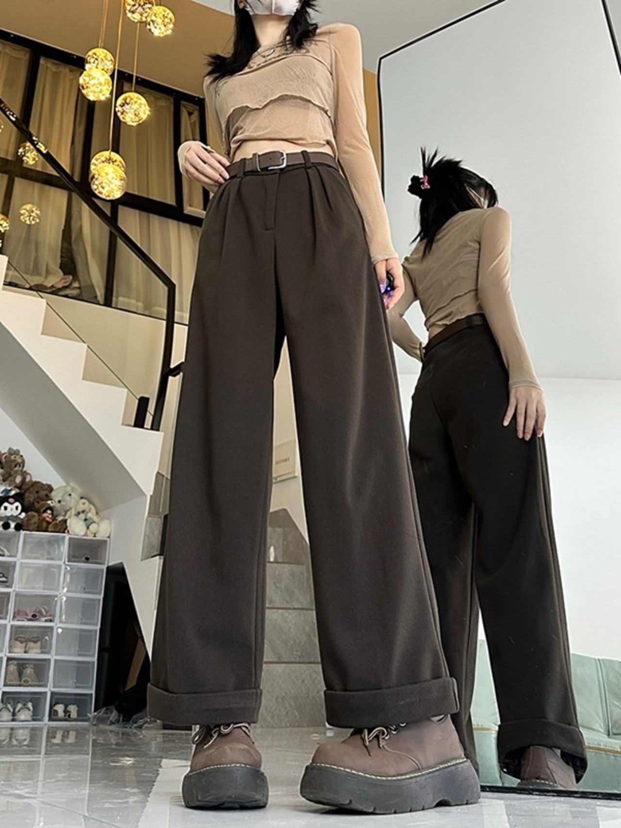 カジュアルロングパンツ パンツ レディース ロング丈 カジュアル 秋 冬 シンプル 無地 美脚効果 脚長効果 デート MH3879