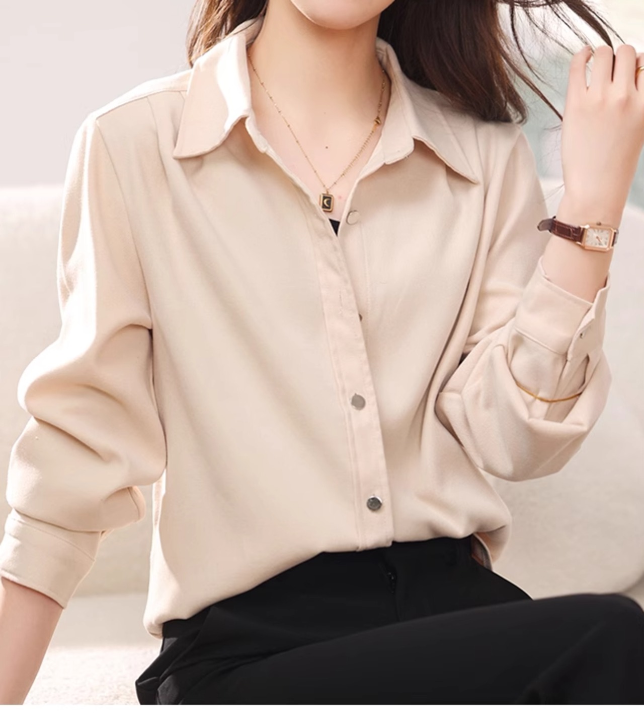 シャツ ブラウス レディース 長袖 無地 秋冬 シンプル オフィス ナチュラル 通勤 清楚 クール プチプラ ベージュ ab2922
