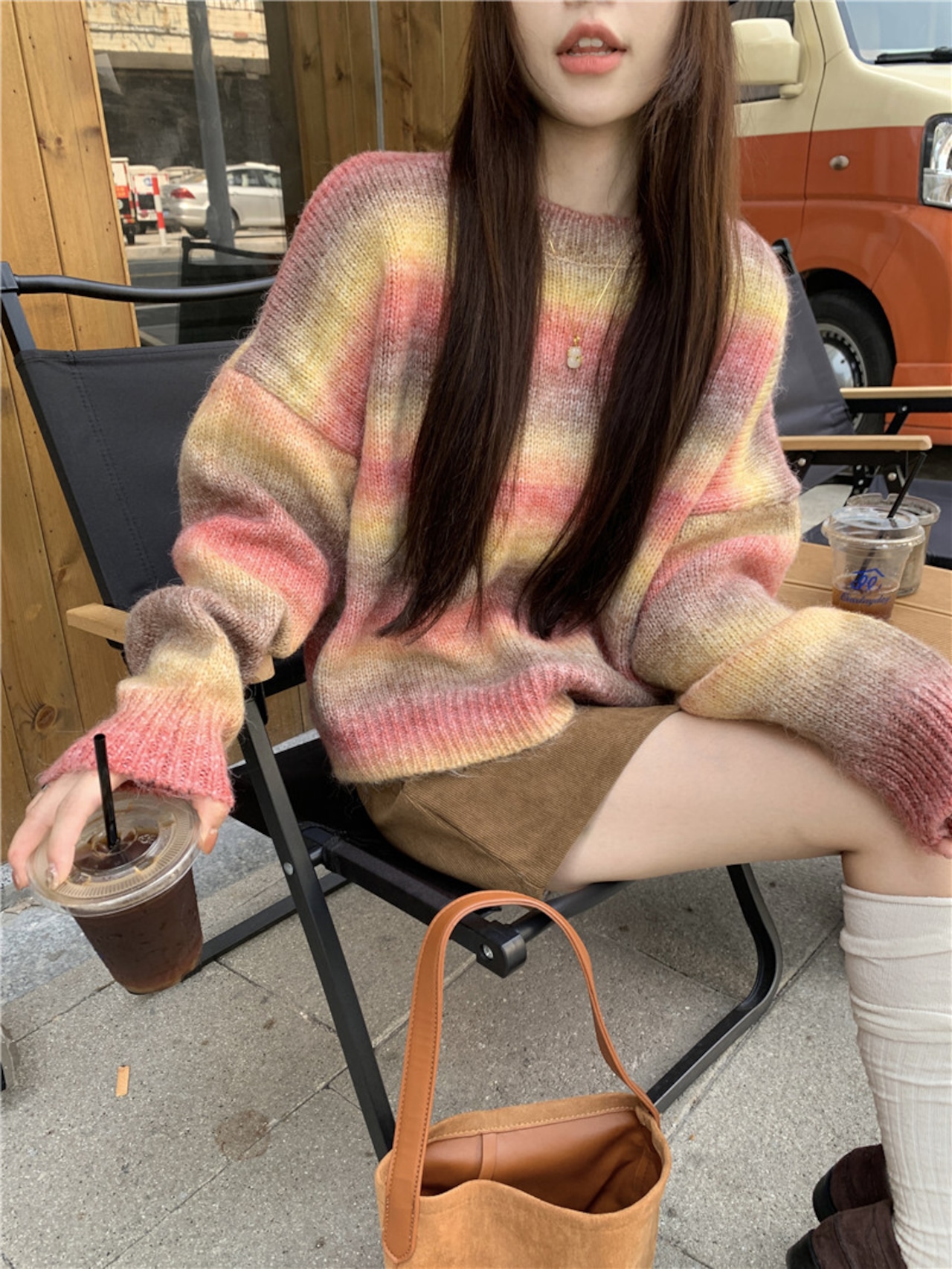 セーター トップス 長袖 ニット ストライプ ボーダー レディース ガーリー 秋冬 キュート ゆったり 韓国 カジュアル MH3903