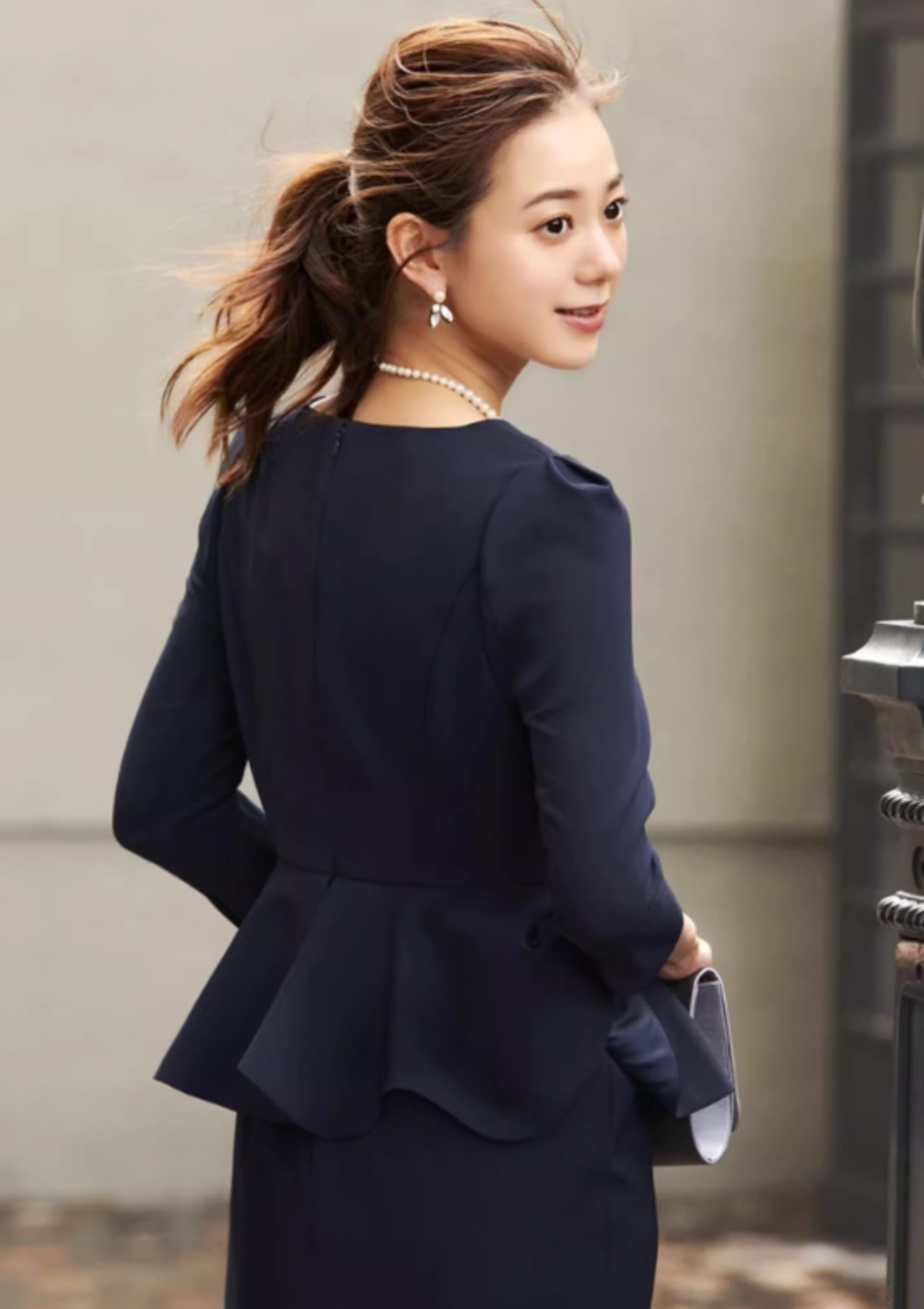 ワンピース レディース フォーマル エレガント フレア 無地 春秋 ひざ丈 七分袖 ラウンドネック 冠婚葬祭 セレモニースーツ イベント ネイビー ab2955