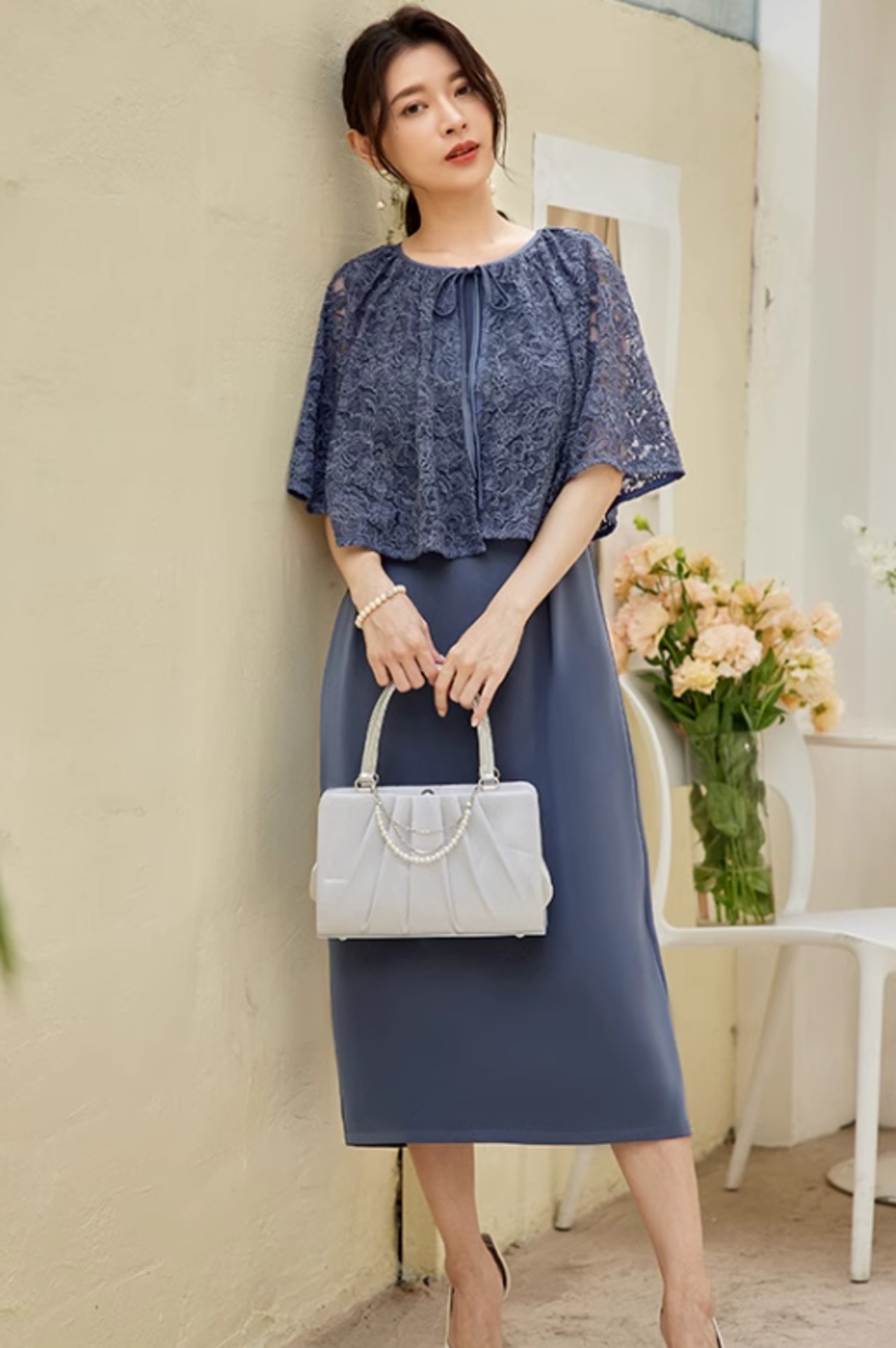 ドレス ワンピースドレス ツーピース レディース ケープ レース ノースリーブ ひざ丈 パーティー 結婚式 エレガント お呼ばれ 二次会 ブルー ab2965