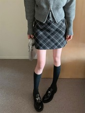 ミニ丈のチェックスカート。