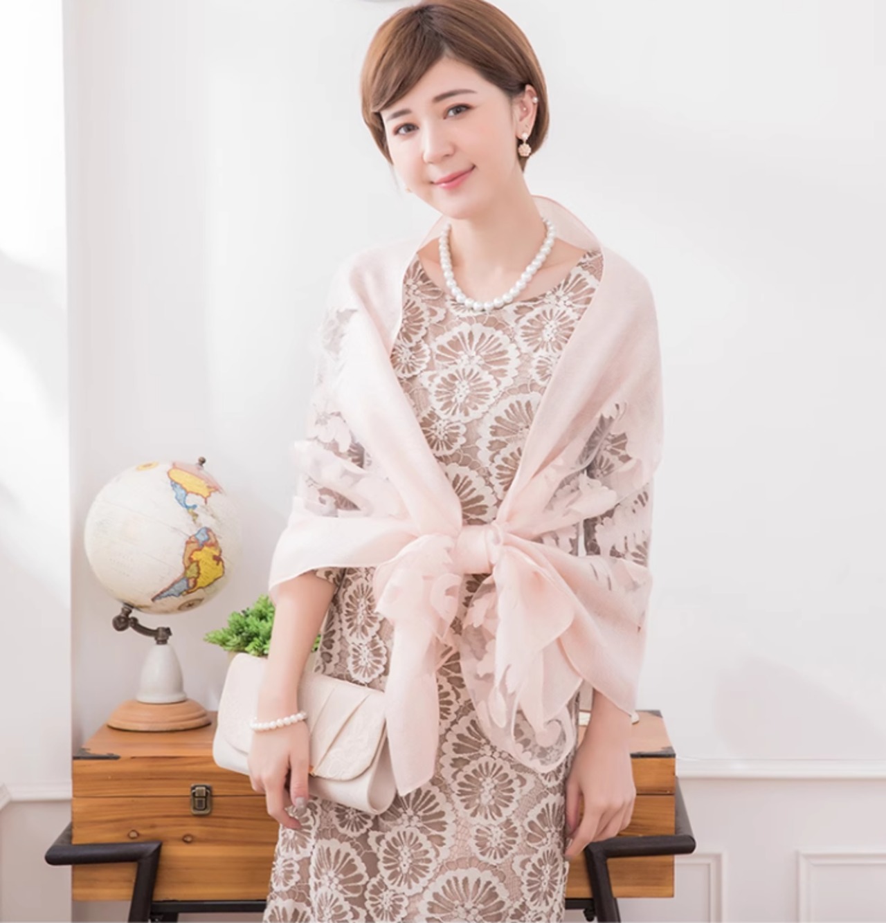 ショール ストール レース レディース パーティー 二次会 お呼ばれ 結婚式 透け感 花柄 エレガント 存在感 体型カバー ピンク ab2980