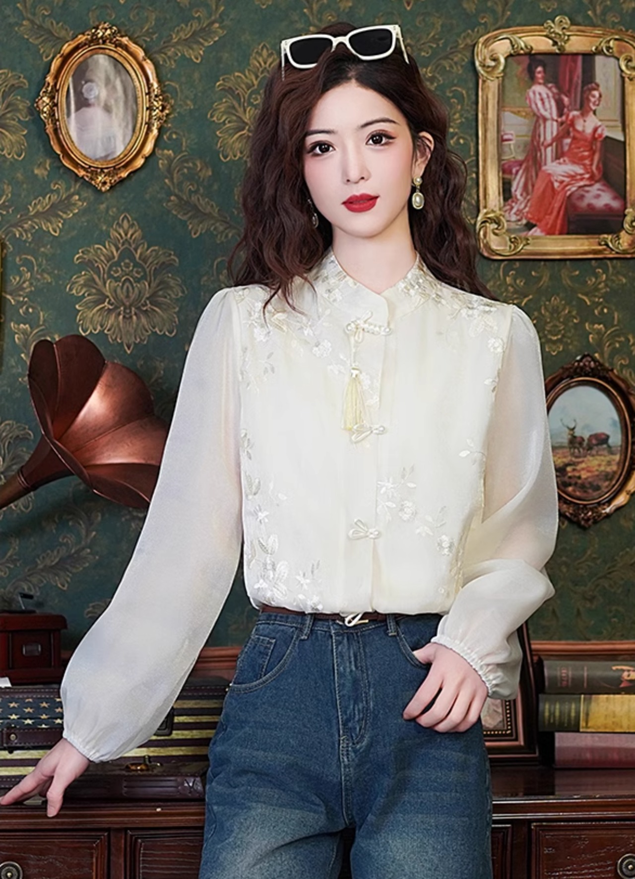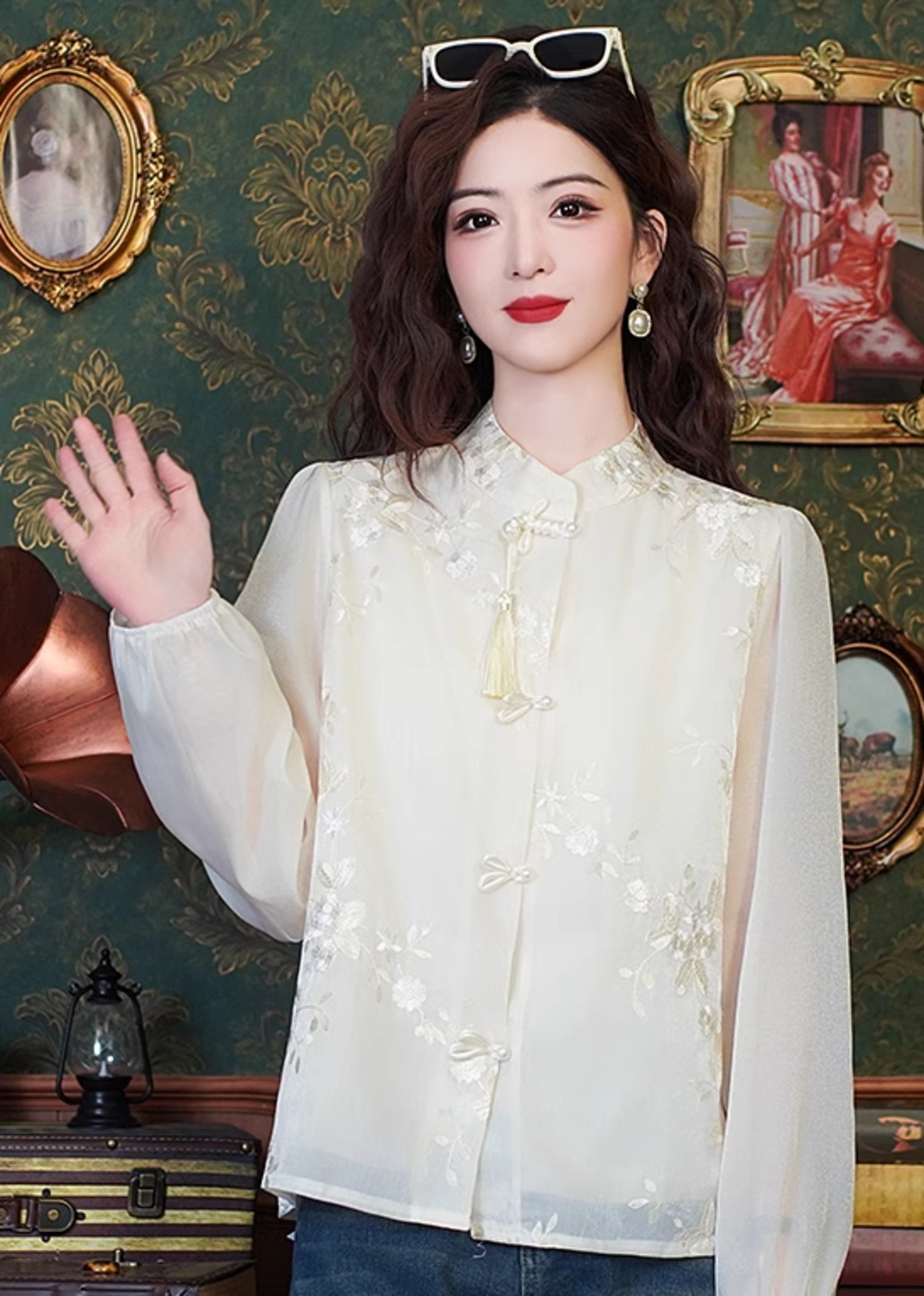 チャイナ風のシフォンシャツ♪
