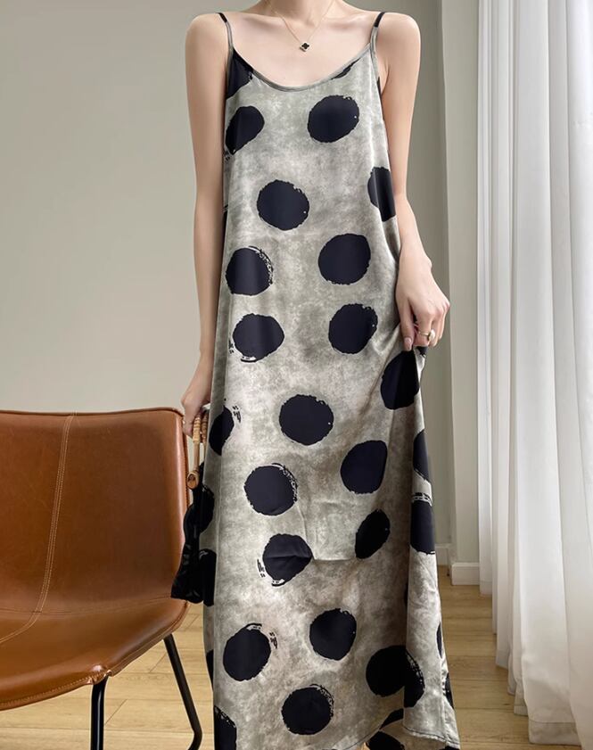 ワンピース キャミワンピ ロング丈 レディース 夏ワンピ ラウンドネック 水玉 ドット ゆったり Aライン ガーリー ab3041