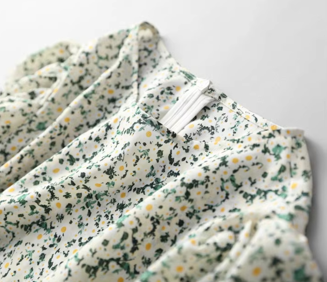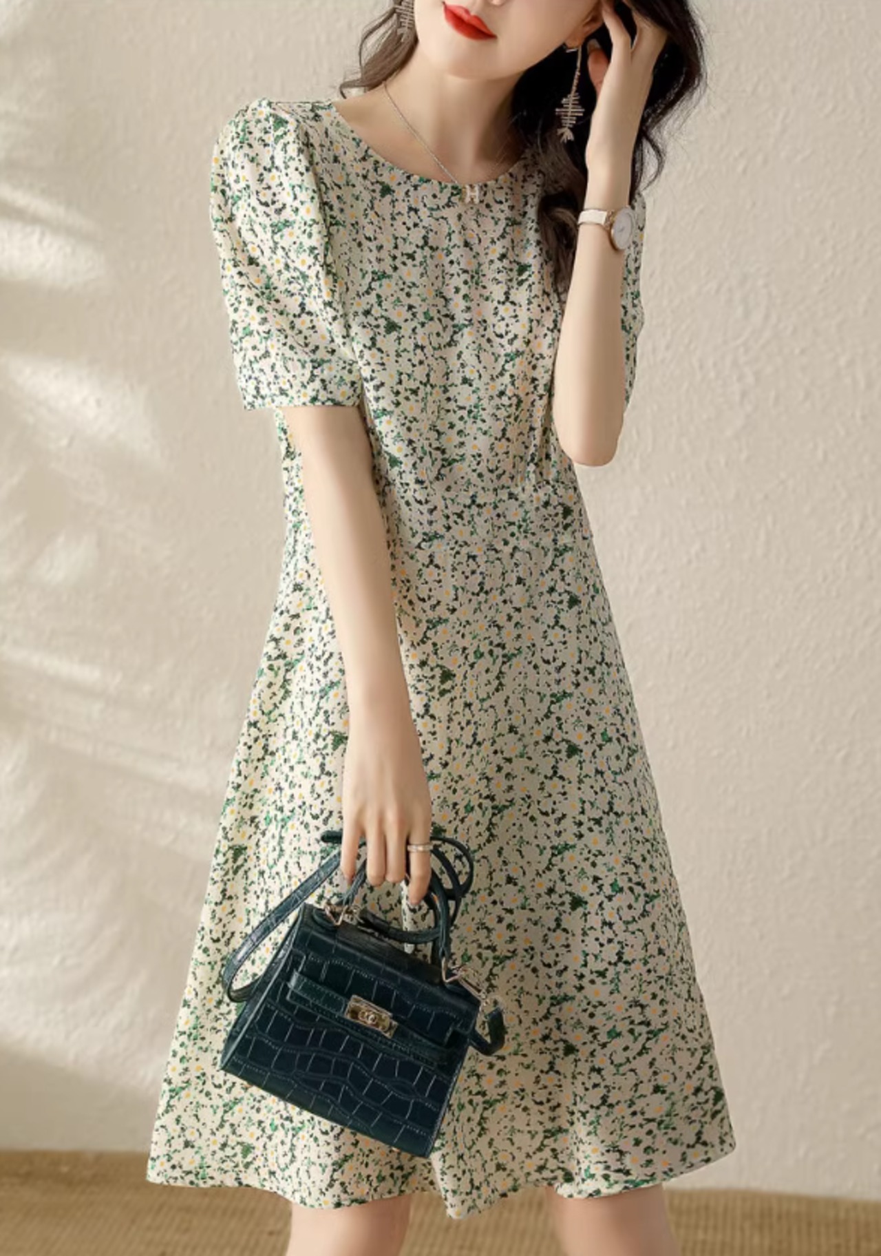 ワンピース 春夏 レディース 花柄 ラウンドネック 小花柄 半袖 ひざ丈 さわやか ガーリー ドレープ ab3066