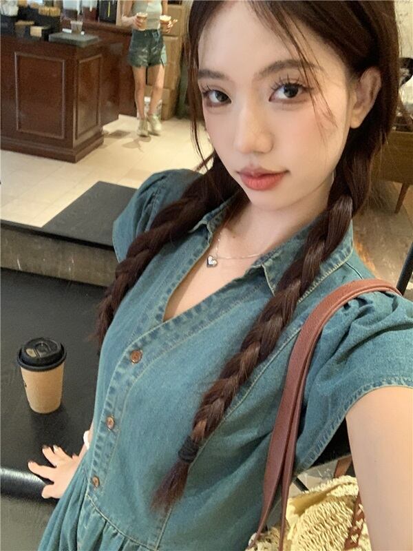 デニムワンピース ワンピース レディース ロング丈 デニム 半袖 Aライン きれいめ 夏 シック デート MH4003