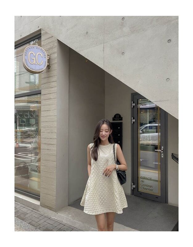 ワンピース レディース ミニ丈 ノースリーブ ひし形 レトロ 夏 ガーリー シック おしゃれ デート MH4023