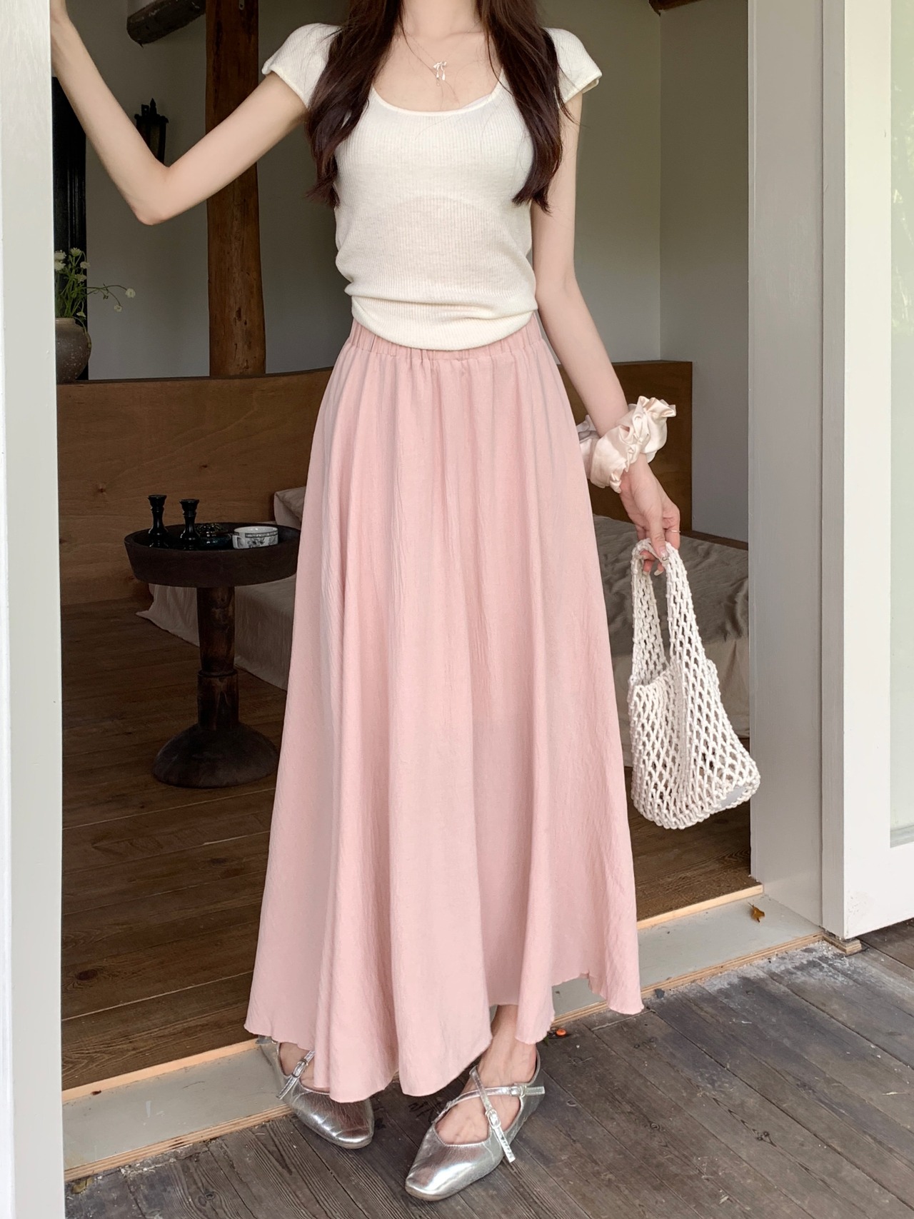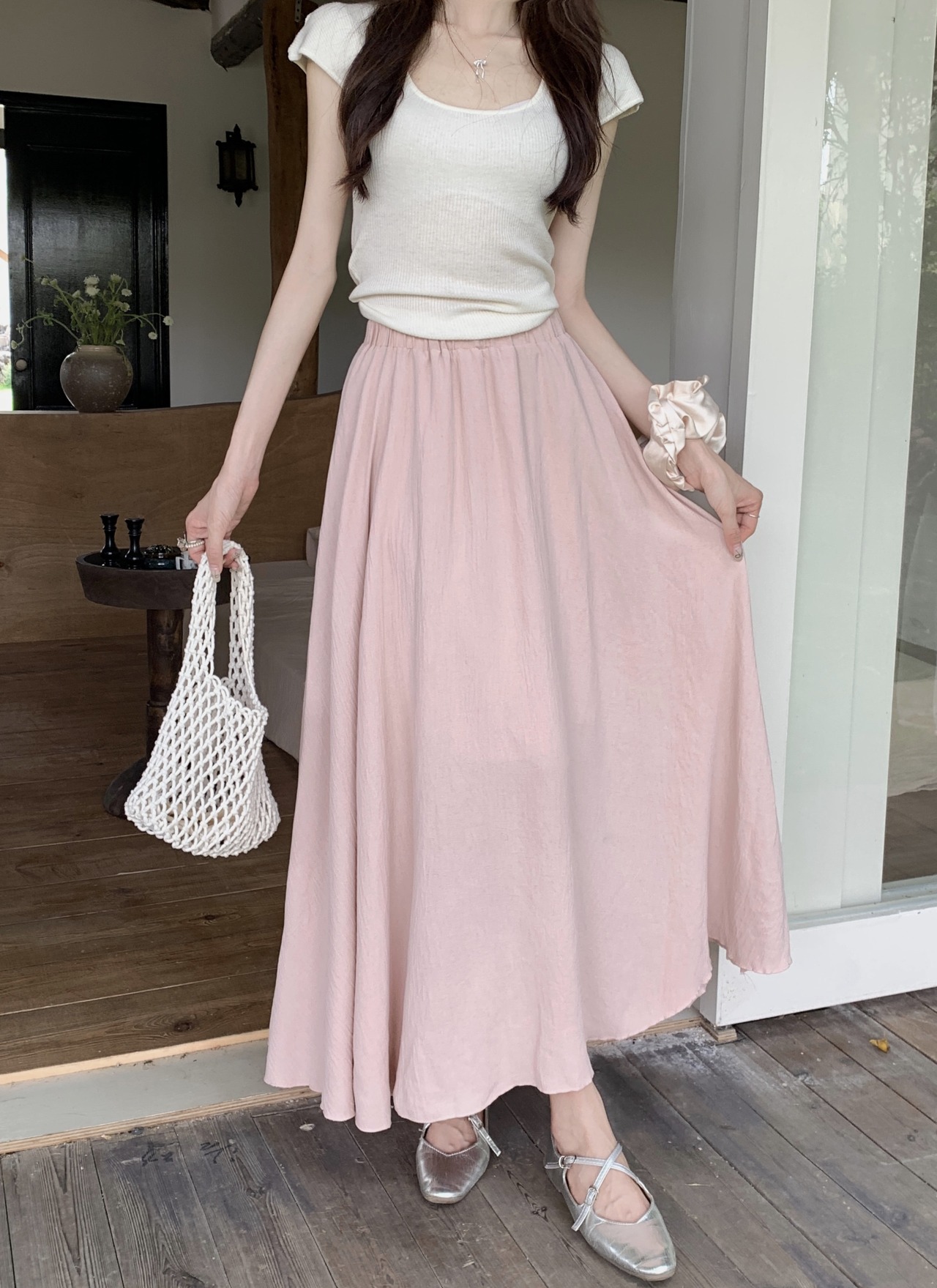 ロング丈のAラインスカート。