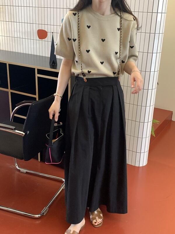 トップス レディース 半袖 サマーニット ニット ラウンドネック ハート柄 ハート レトロ 夏 かわいい おしゃれ デート ガーリー MH4061