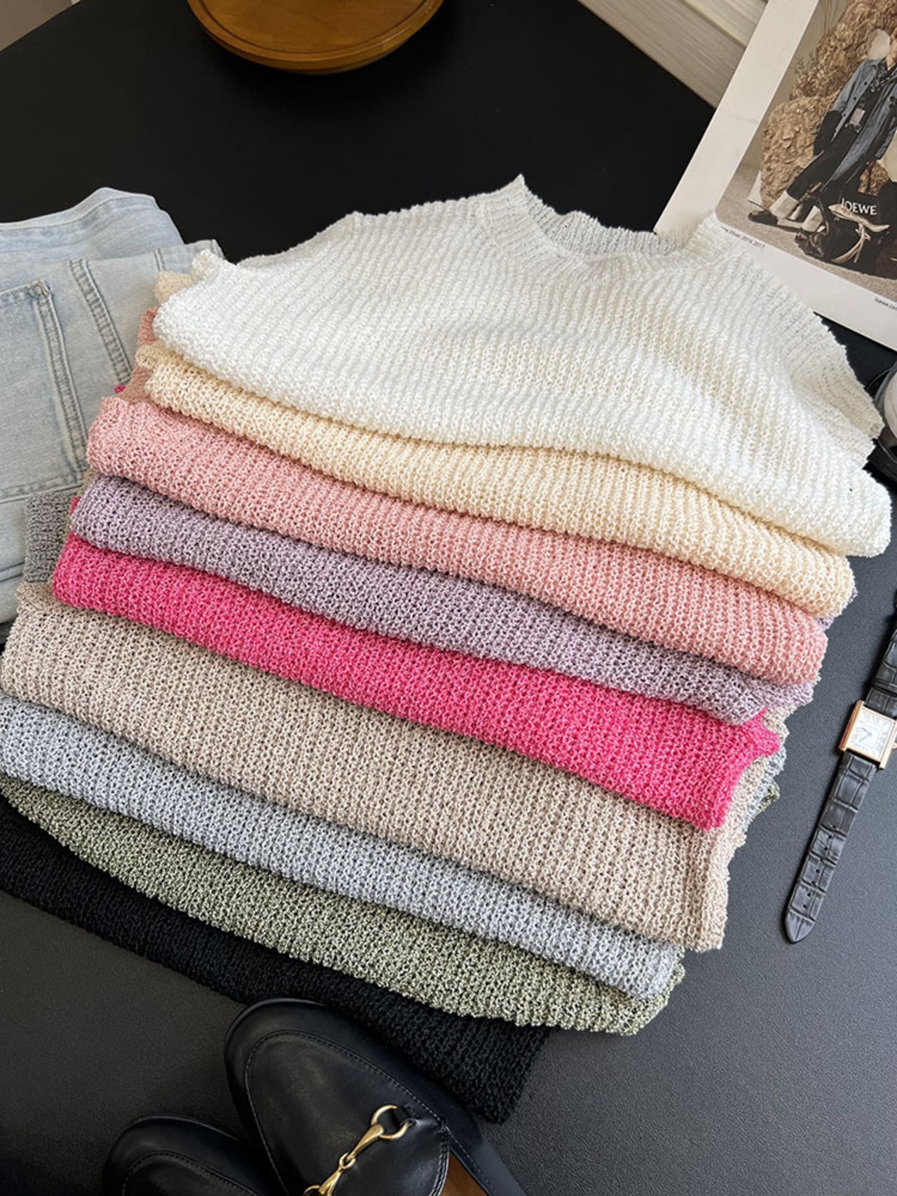 トップス レディース ニット シアー 透け感 サマーニット 涼し気 残暑 夏 薄手 ガーリー おしゃれ MH4104