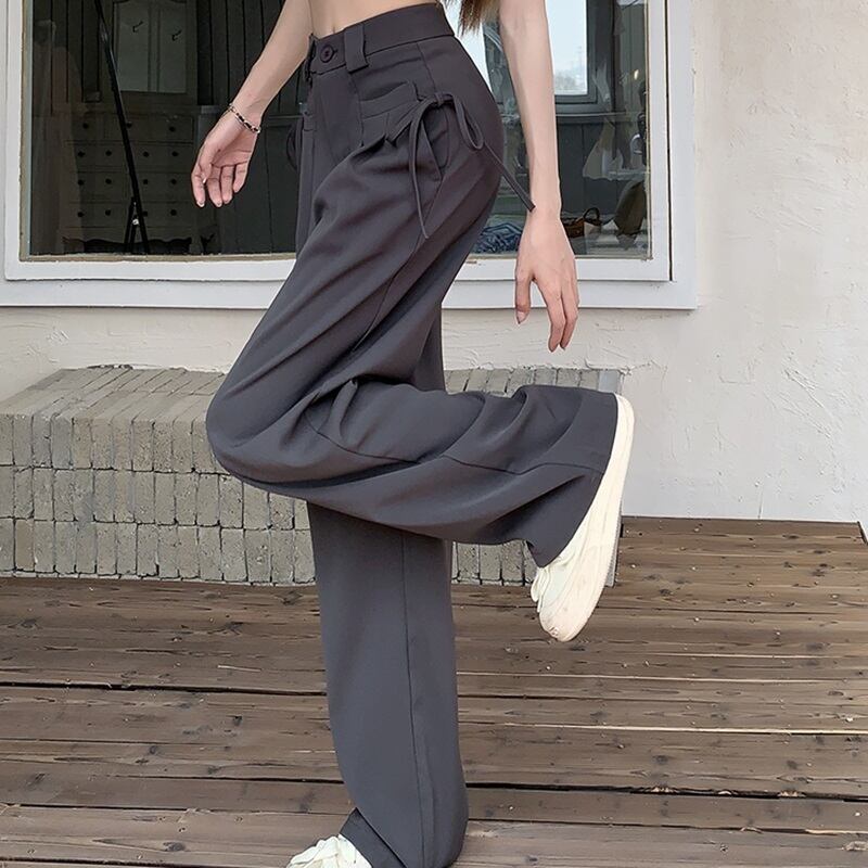 パンツ レディース ロング丈 ロングパンツ ワイド リボン ハイウエスト 脚長効果 美脚 無地 秋 おしゃれ MH4113