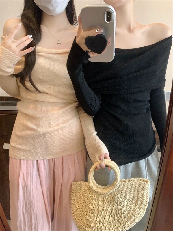 トップス レディース 長袖 オフショルダー オフショル スリム 細見え スリムフィット 肩出し 秋 おしゃれ デート 韓国 MH4127