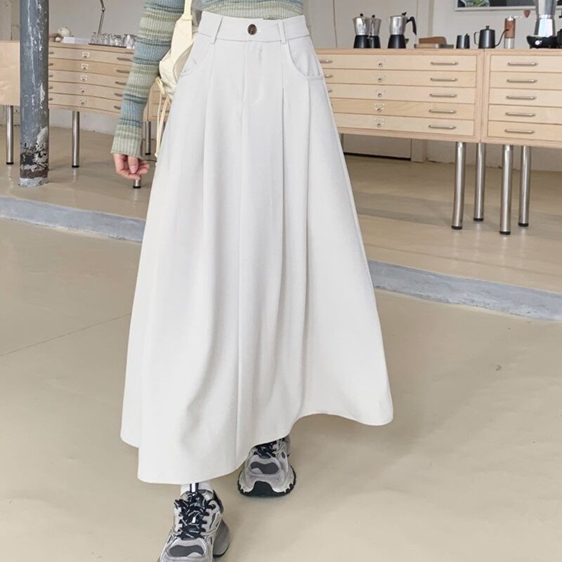スカート レディース ロング丈 Aライン ハイウエスト 細見え 脚長効果 無地 カジュアル 秋 きれいめ MH4129