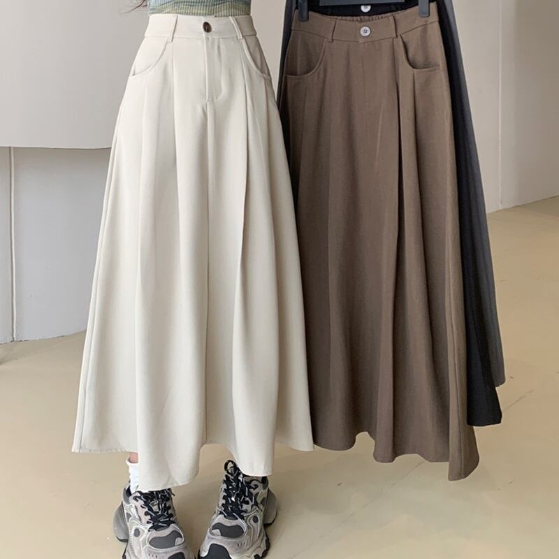 スカート レディース ロング丈 Aライン ハイウエスト 細見え 脚長効果 無地 カジュアル 秋 きれいめ MH4131
