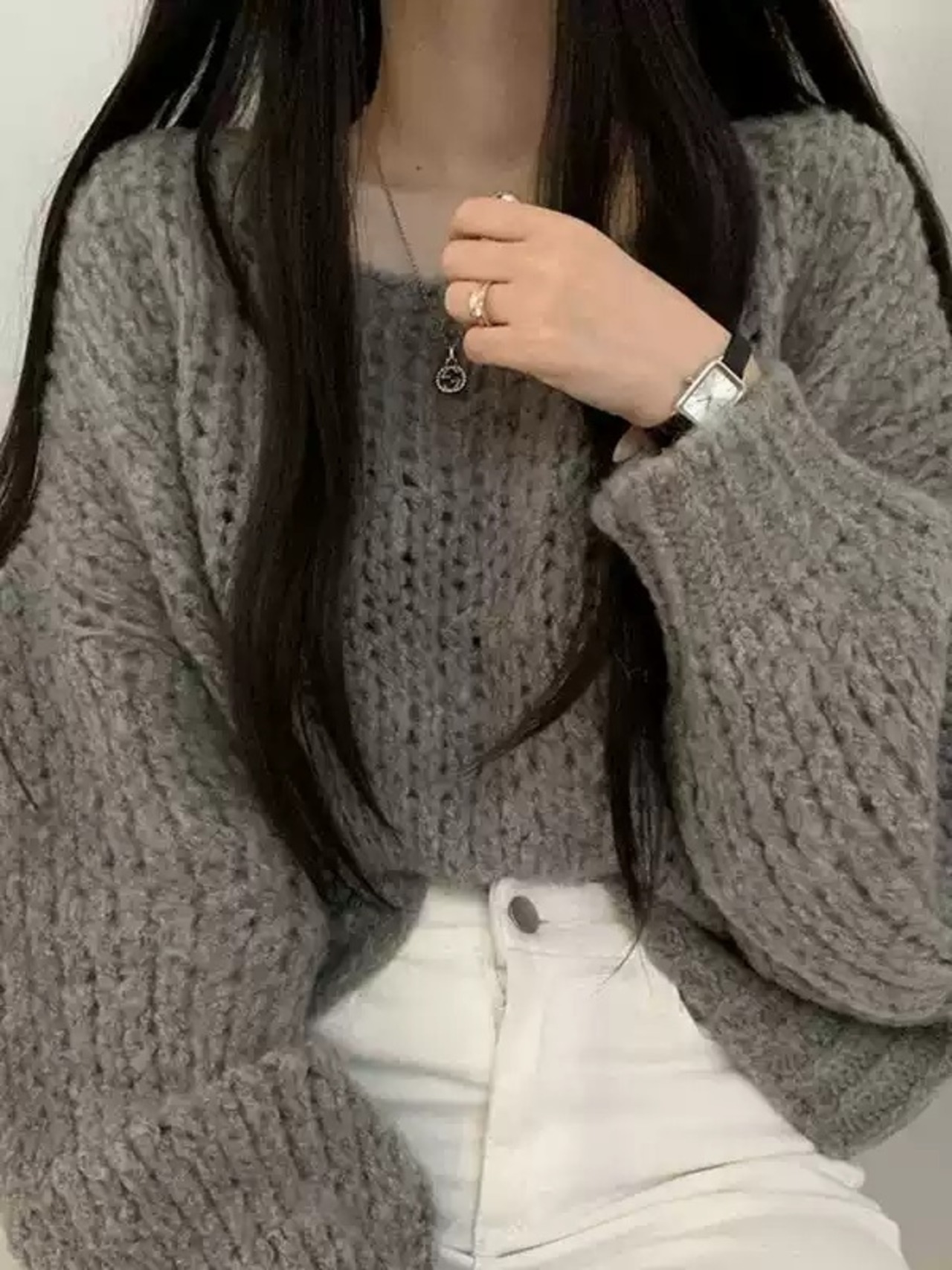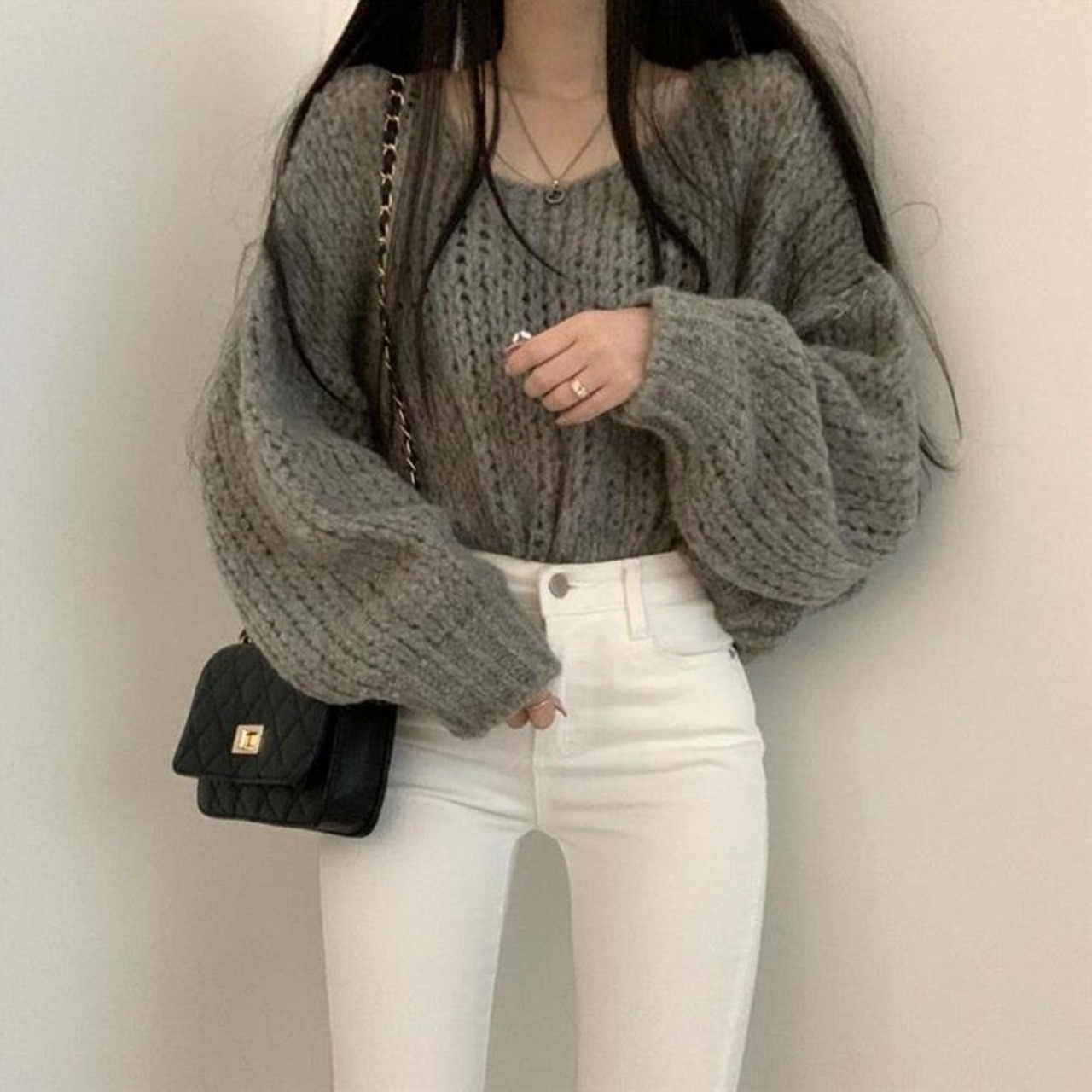 トップス レディース ニット セーター 長袖 ルーズ ランタンスリーブ 秋 冬 カジュアル ゆったり 体型カバー デート 韓国 MH4154
