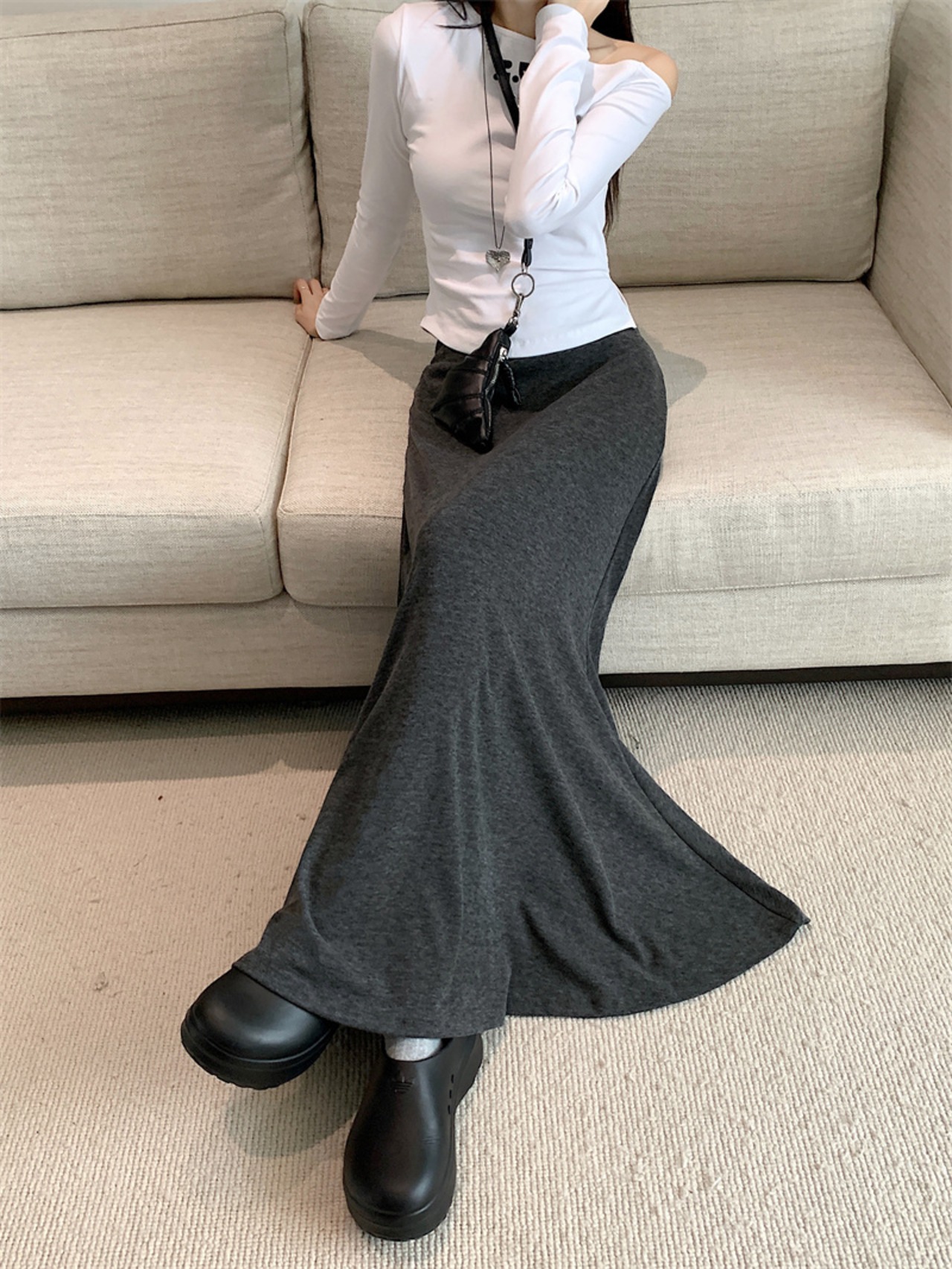 スカート ロング丈 フィッシュテール ハイウエスト 無地 スタイリッシュ 美脚 スリムフィット きれいめ 秋 デート お出かけ MH4174